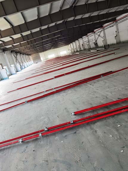 今日施工內容 1,排水管安裝 2,消防材料吊裝 3,凍庫板材 安裝 4,廁所墻體砌筑 5,混凝土施工 今日材料進場 消防管 商混