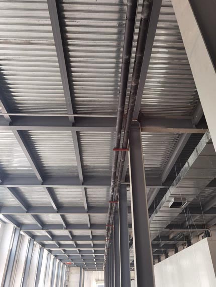 1,一樓地槽 彩板安裝 2,一樓消防立管安裝 3,一層鋼構平臺施工 4,一層擋水墻抹灰 5,樓層鋼構焊接 加固 6,一層空調水管保溫 7,一層防排煙施工 8,二樓地槽 彩板安裝