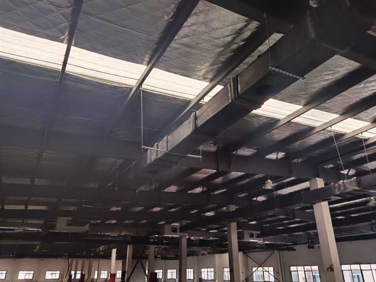 今日施工內容 1,彩板墻頂板安裝 2,一層擋水墻抹灰 3,一層動力電橋架安裝 4,一層地坪施工 5,外墻真石漆施工 6,一層照明安裝 7,一層風管保溫安裝