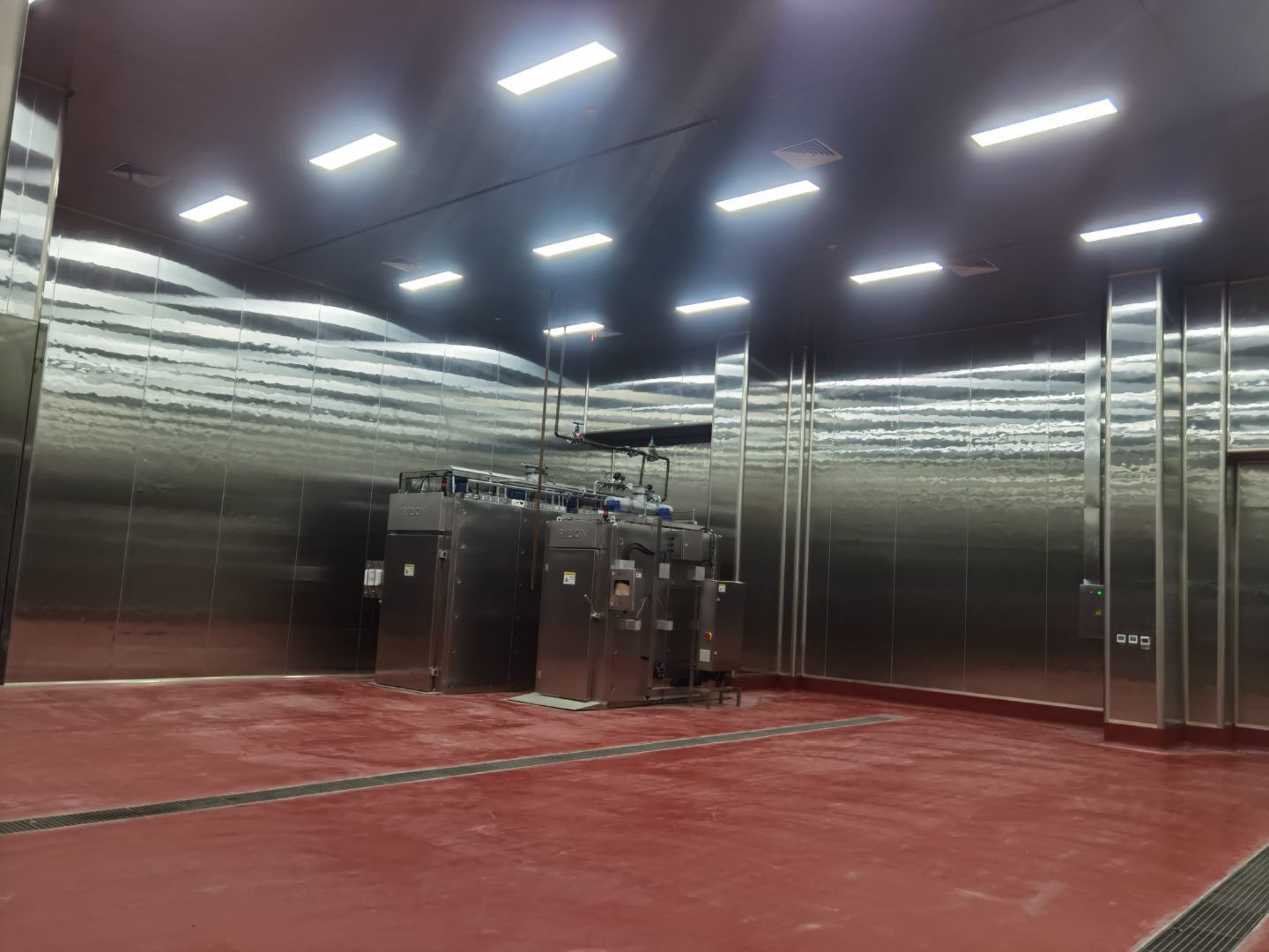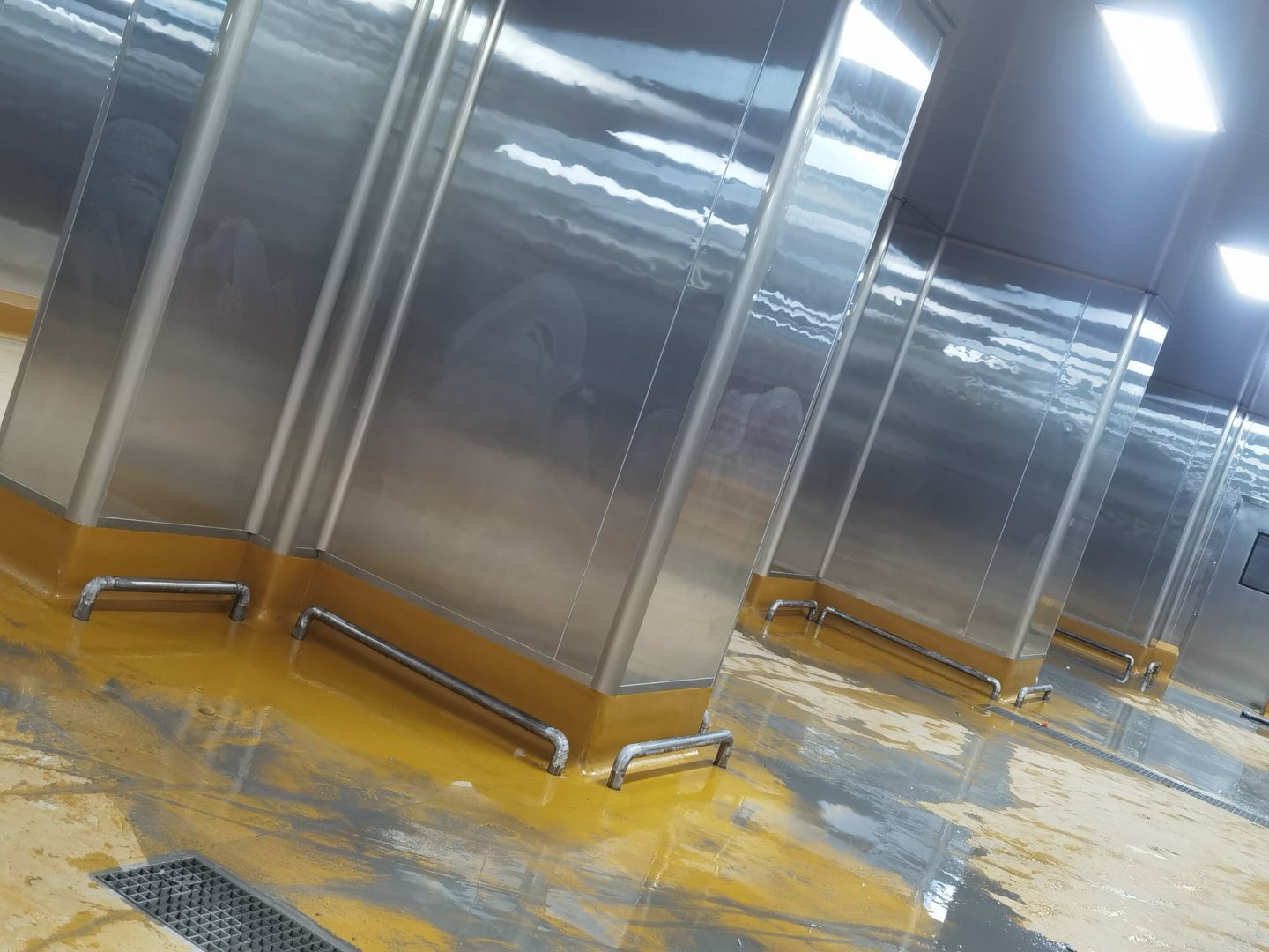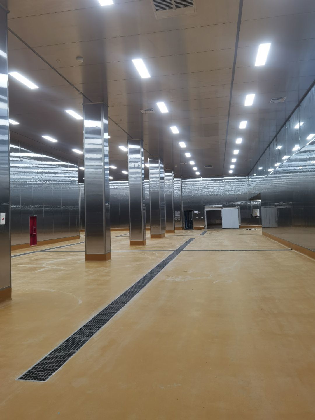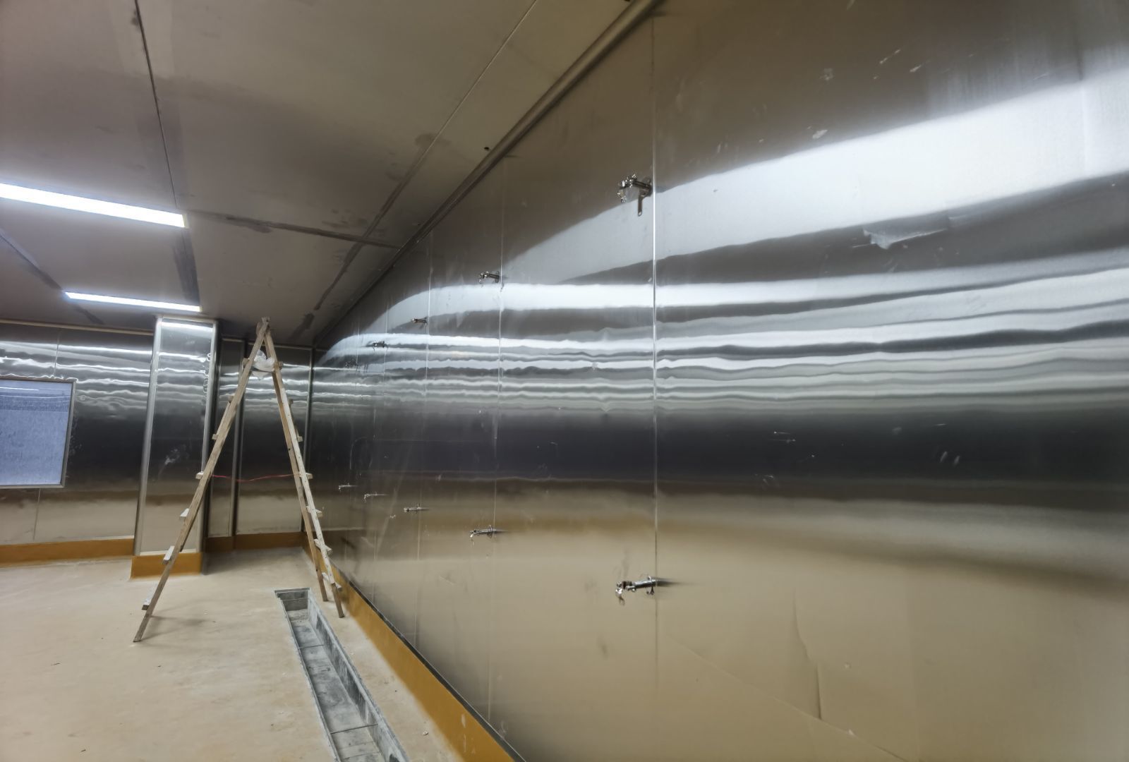1,場地 整平 2,鋼構施工 3,不銹鋼排水溝安裝 4,不銹鋼水溝 焊接 5,場地建渣清理 6,凍庫板材到場 安裝 7,消防進場 8,混凝土準備工作