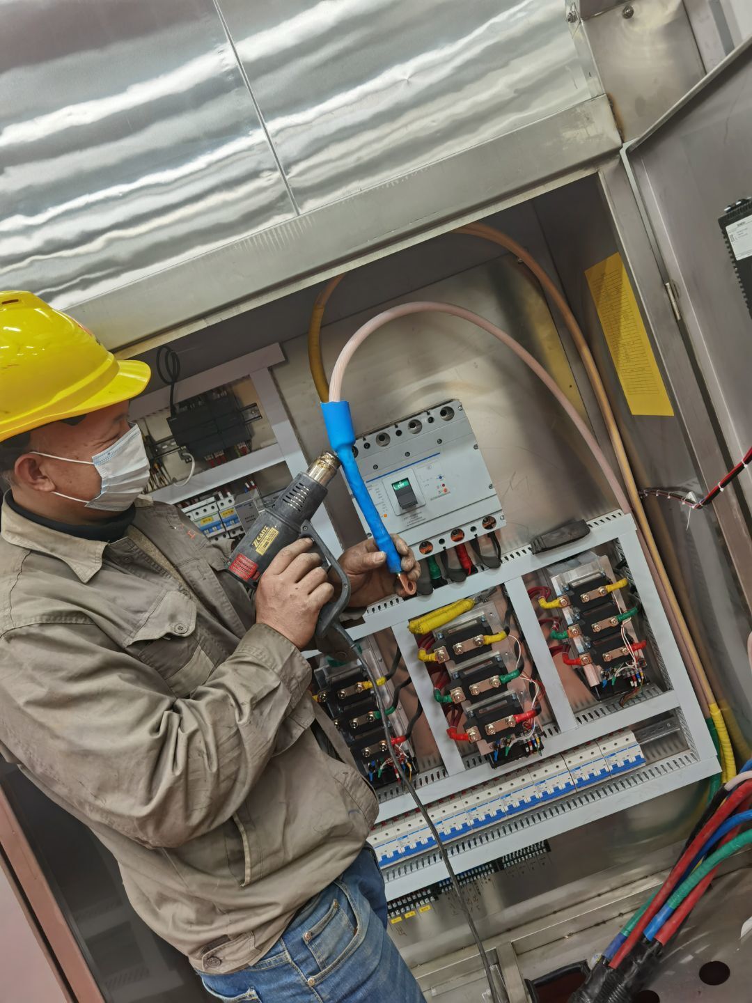 今日施工內容 1.二層彩板安裝 2, 一層門體安裝 3,監控施工布線 4,參觀通道原子灰開始補縫 5,設備就位 6,配電箱壓線頭 7,二樓煙感安裝 8,室外污水池墊層澆筑