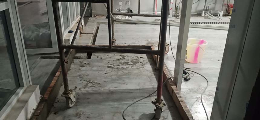 1、施工放線完成95%; 2、門洞開設完成100%; 3、排水管溝破除完成30%; 4、樓板開洞完成50%。