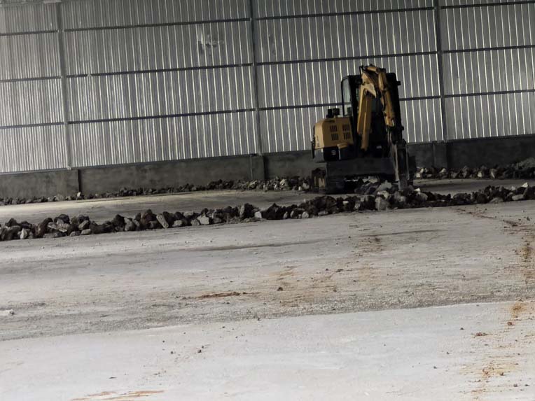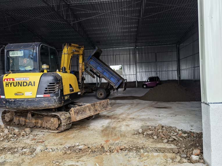 1.水泥,河沙,瓷磚等土建材料到場。 2.開始清理排水溝,安排轉運破碎后建渣。