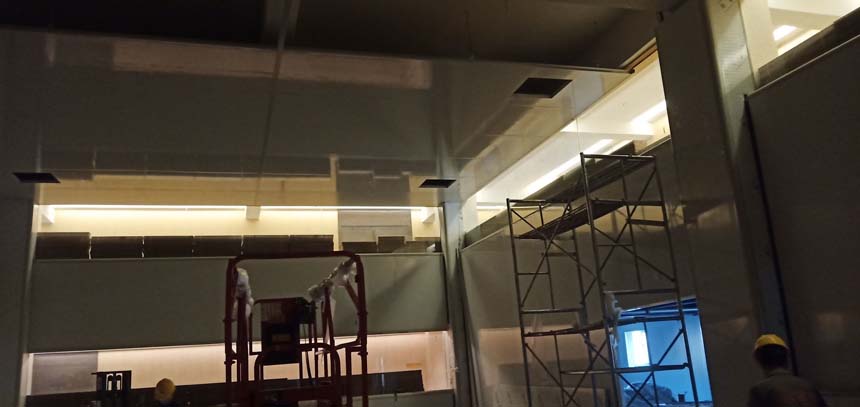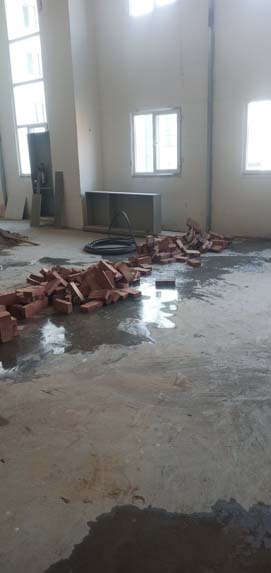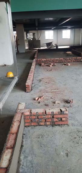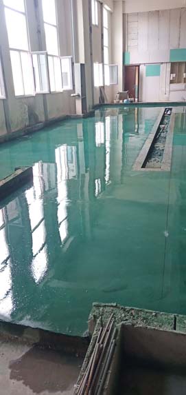 擋水墻砌筑、抹灰完成100% 熬制間防水完成100% 夾層固化地面完成80%