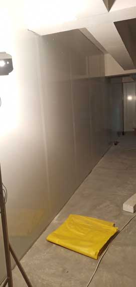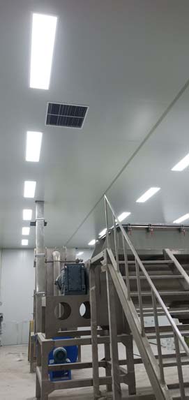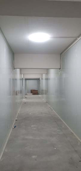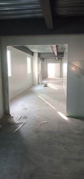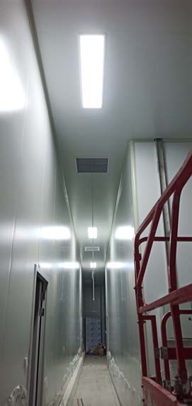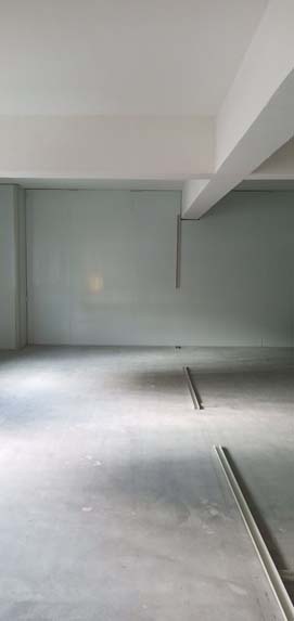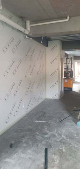 熬制間金剛砂地面已完成 彩鋼板夾層已開始立墻板