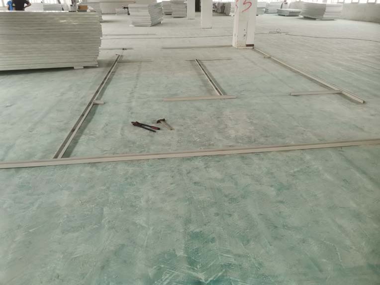 1.墻板安裝完成30%; 2.地槽安裝完成45%; 3.放線完成50%。