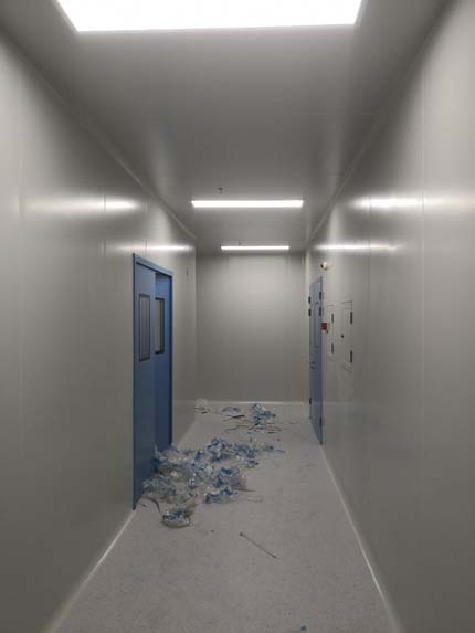 1.風(fēng)淋室安裝完成 2.成品門鎖安裝完畢100% 3.成品門膠條安裝完成100% 4.工況燈安裝完成95% 5.插座安裝完成100%
