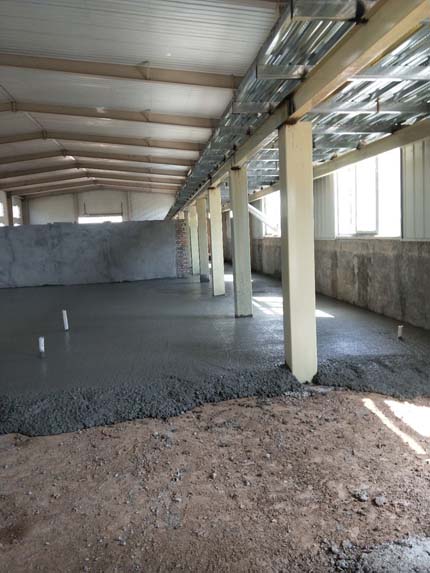 1:彩鋼墻板完成98% 2:彩鋼頂板完成100% 3:撕膜打膠完成90% 4:自制門窗完成95% 5:水電完成70% 6:圓弧完成80% 7:金剛砂完成100% 8:三防板吊頂完成100% 9:地面固化完成30%