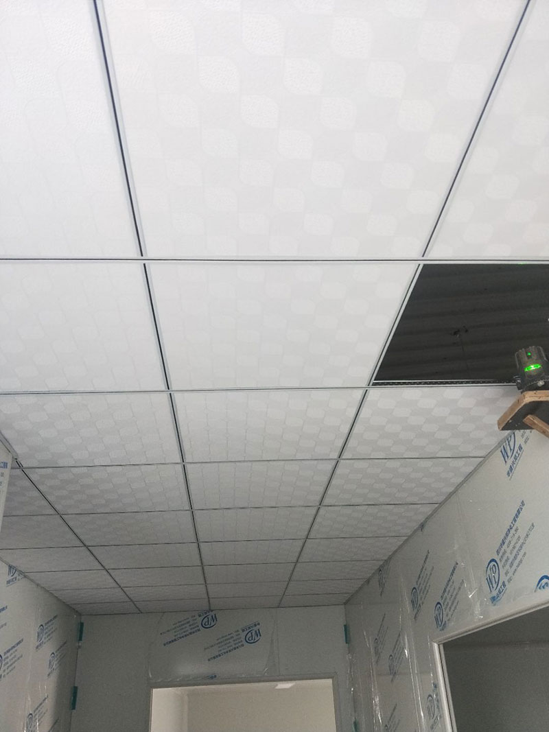 1:彩鋼墻板完成98% 2:彩鋼頂板完成100% 3:掛絲桿完成100% 4:撕膜打膠完成85% 5:自制門窗完成90% 6:水電完成60% 7:圓弧完成60% 8:金剛砂完成100% 9:三防板吊頂完成45%