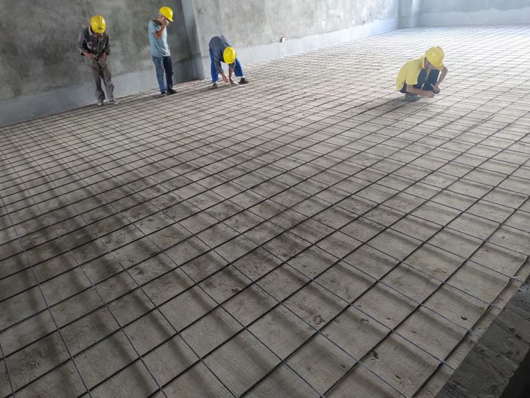 三樓鋼筋綁扎完成約90%,二樓鋼筋綁扎完成約60%,四樓灰餅完成30%,樓梯口斜坡切縫剔除完成50%。