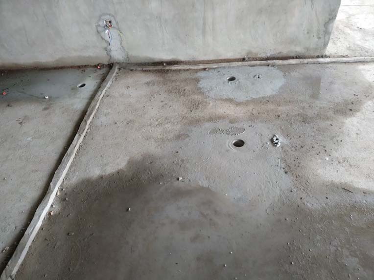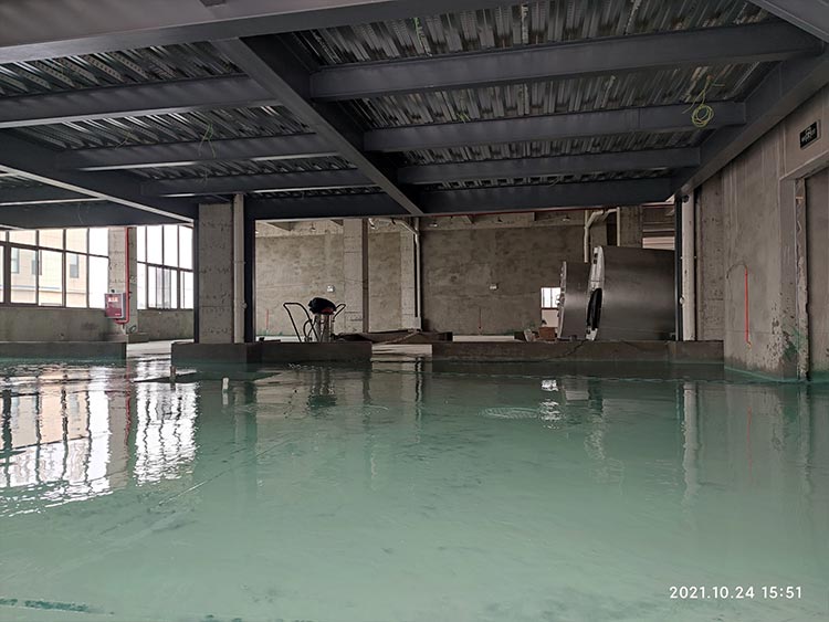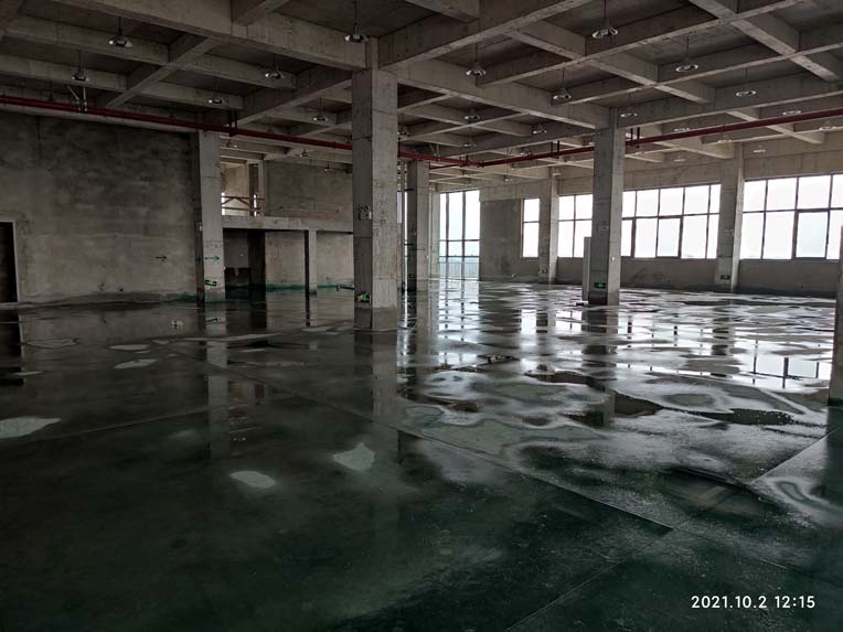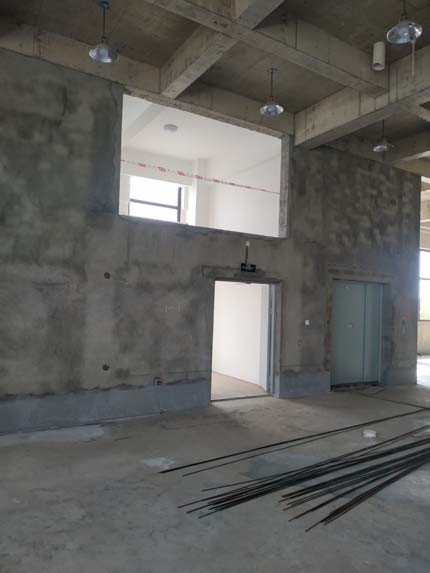 ?1,二樓更衣區彩鋼板隔墻完成; 2,2,3,4樓腳踏池修邊完成; 3,1樓固化完成30%