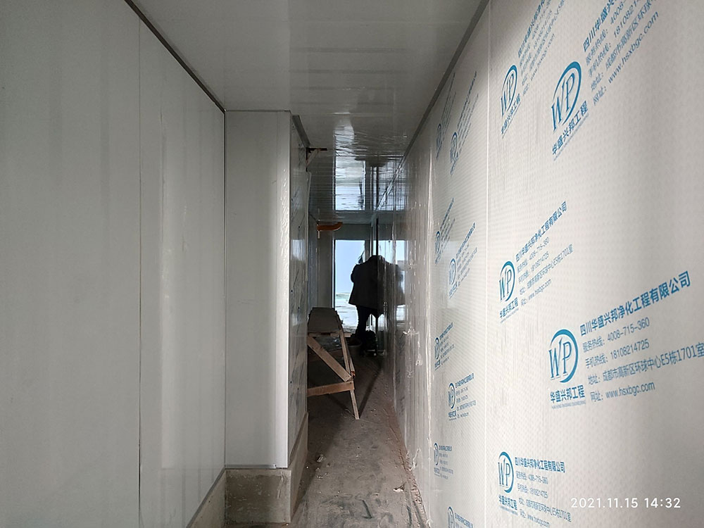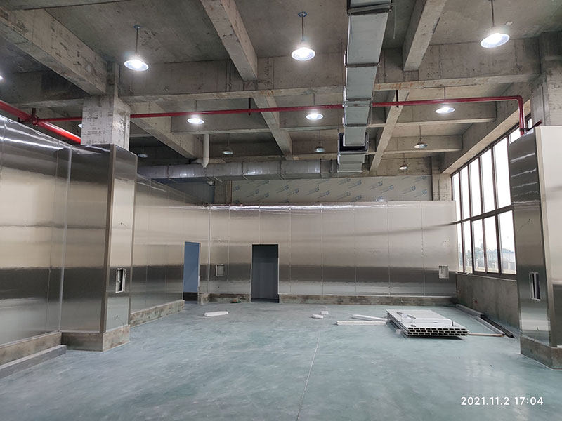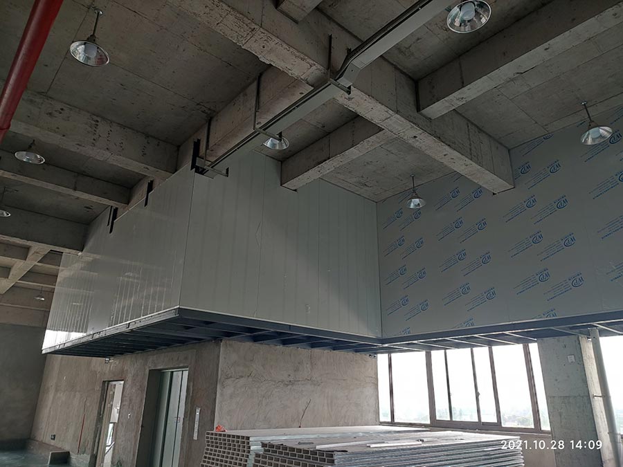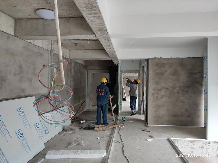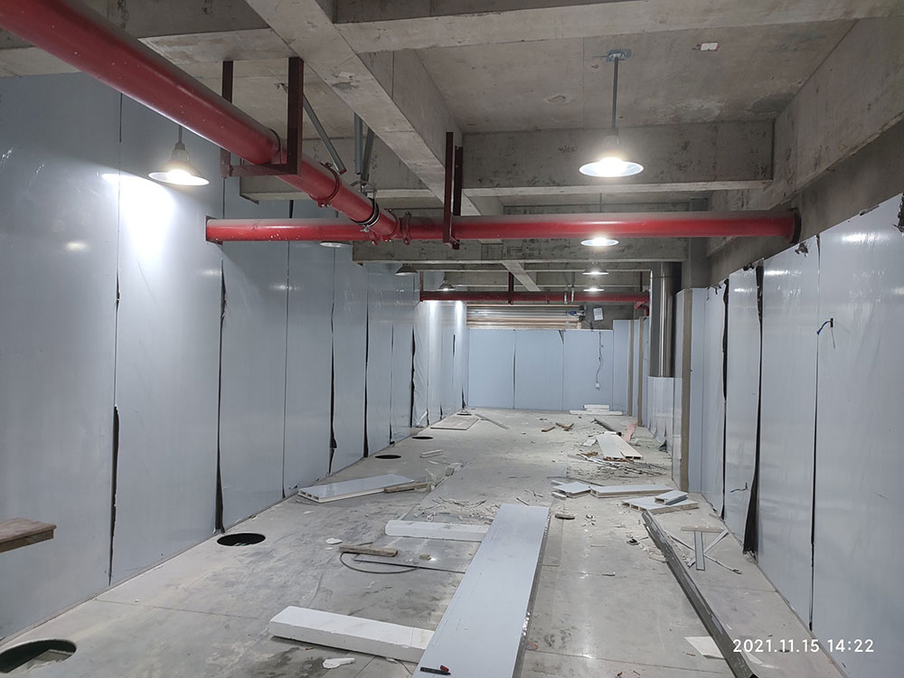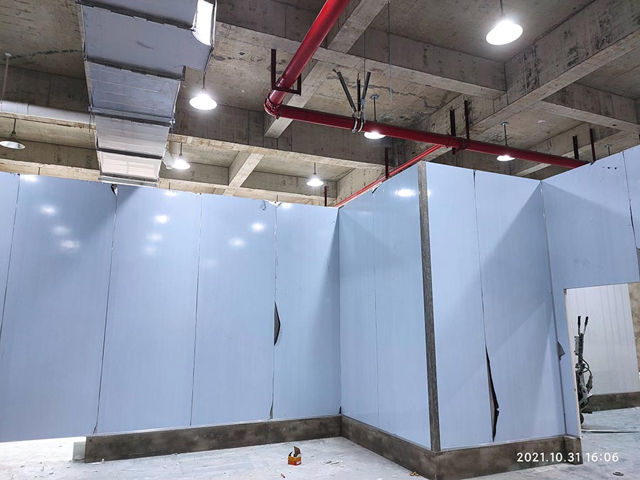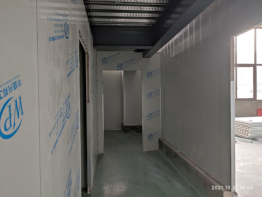 1,一樓彩鋼板隔墻完成80%