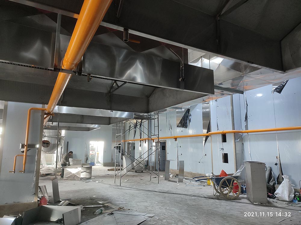 工程進度: 1,一樓鋼平臺彩鋼隔墻完成50% 2,二樓更衣區過道頂板完成 3,3樓頂板吊桿安裝完成80% 4,電工進場,點位繪制并跟甲方確認完成3,4樓