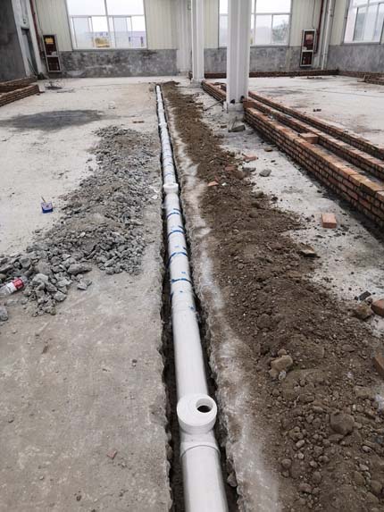 1.河沙,水泥,排水管等材料到場 2.排水管切縫 3.排水管開挖