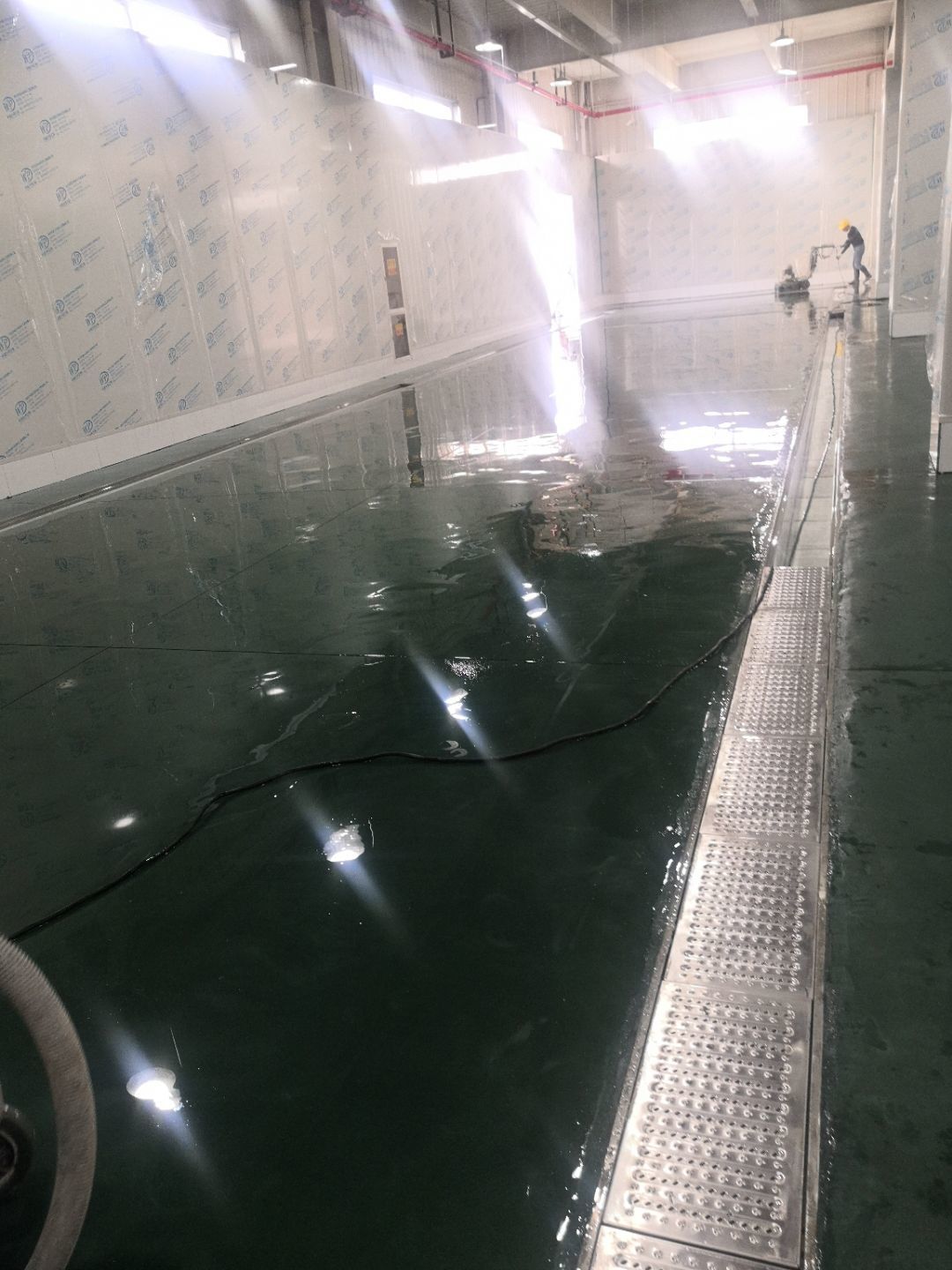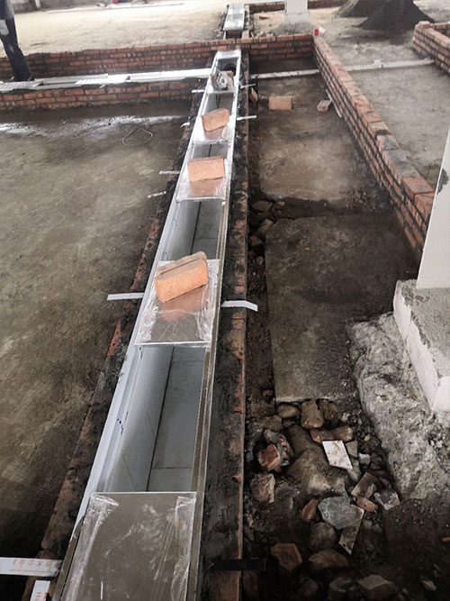 1.檢查井砌磚抹灰完成 2.擋水墻貼瓷磚 3.墻板鋁材到場 4.地面養(yǎng)護(hù) 5.擋水墻做防水