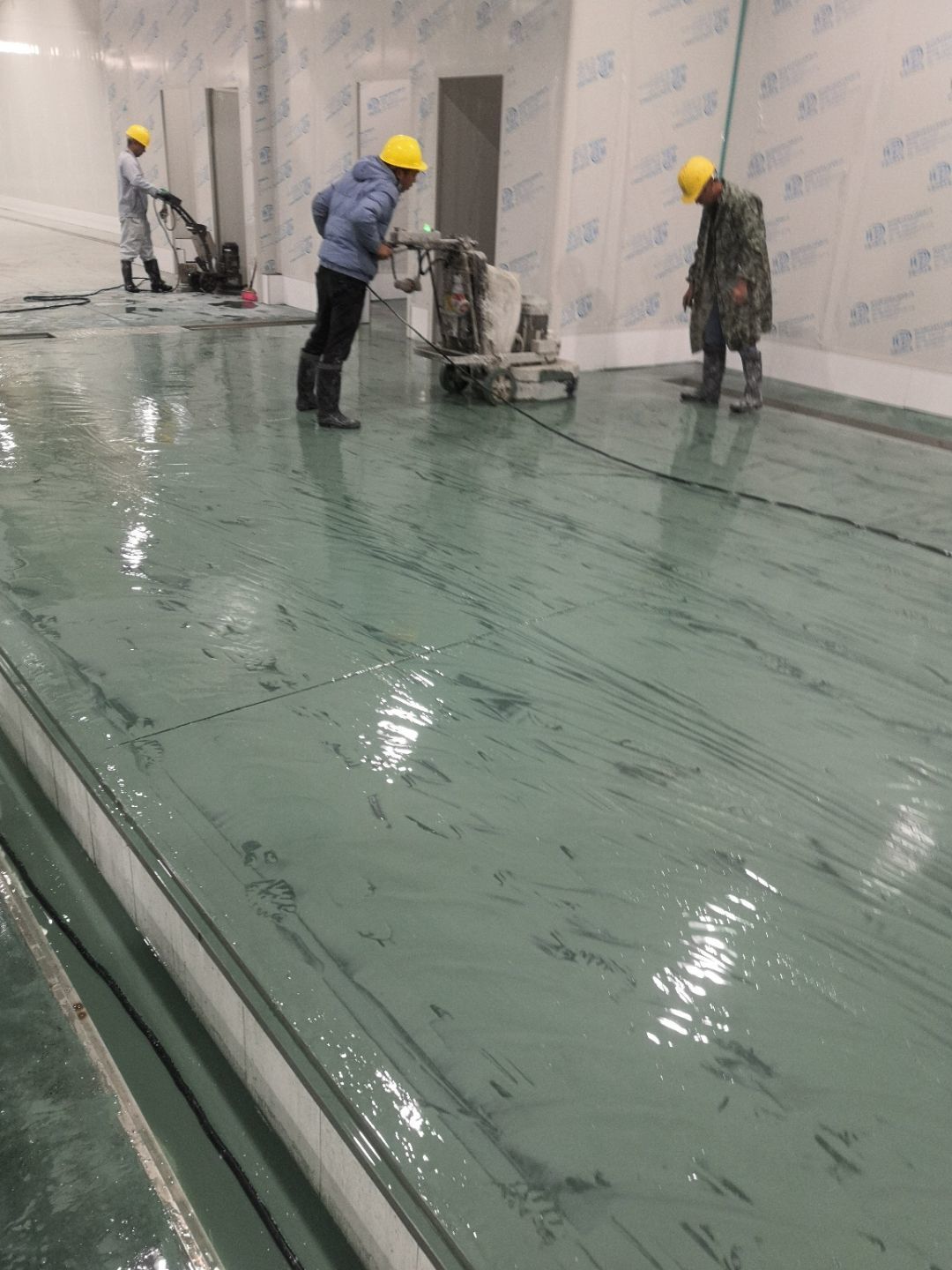 1.地面打磨 2.地面上固化劑,上拋光劑