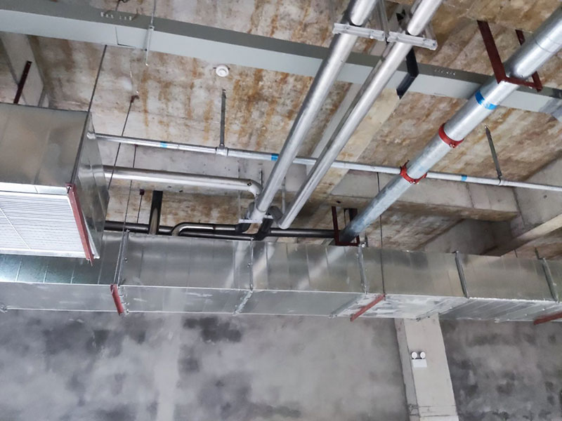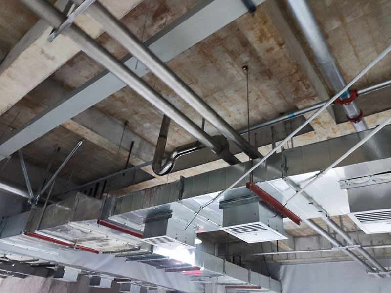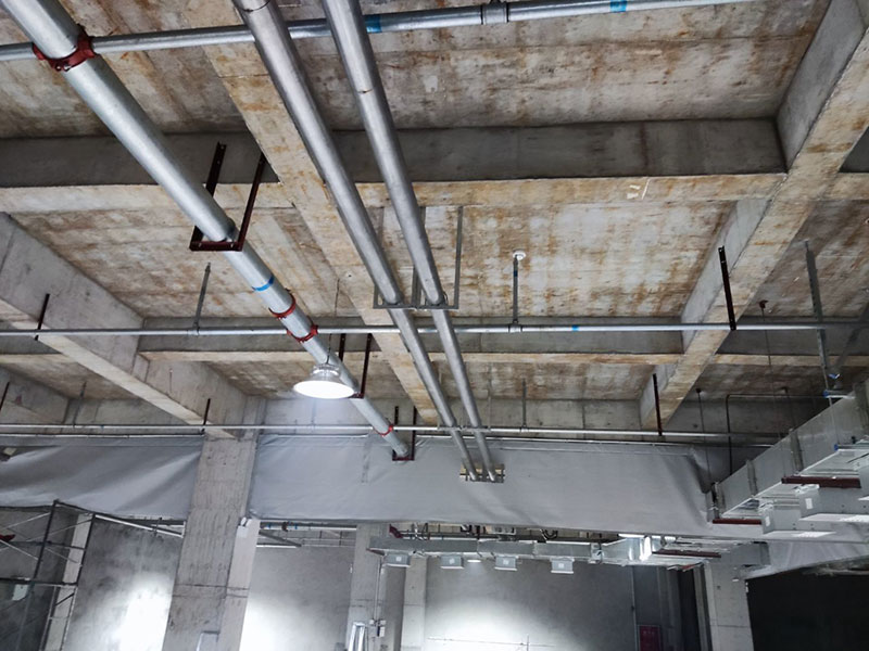 1,不銹鋼排水管安裝完成90% 2,空調水主管安裝完成70%