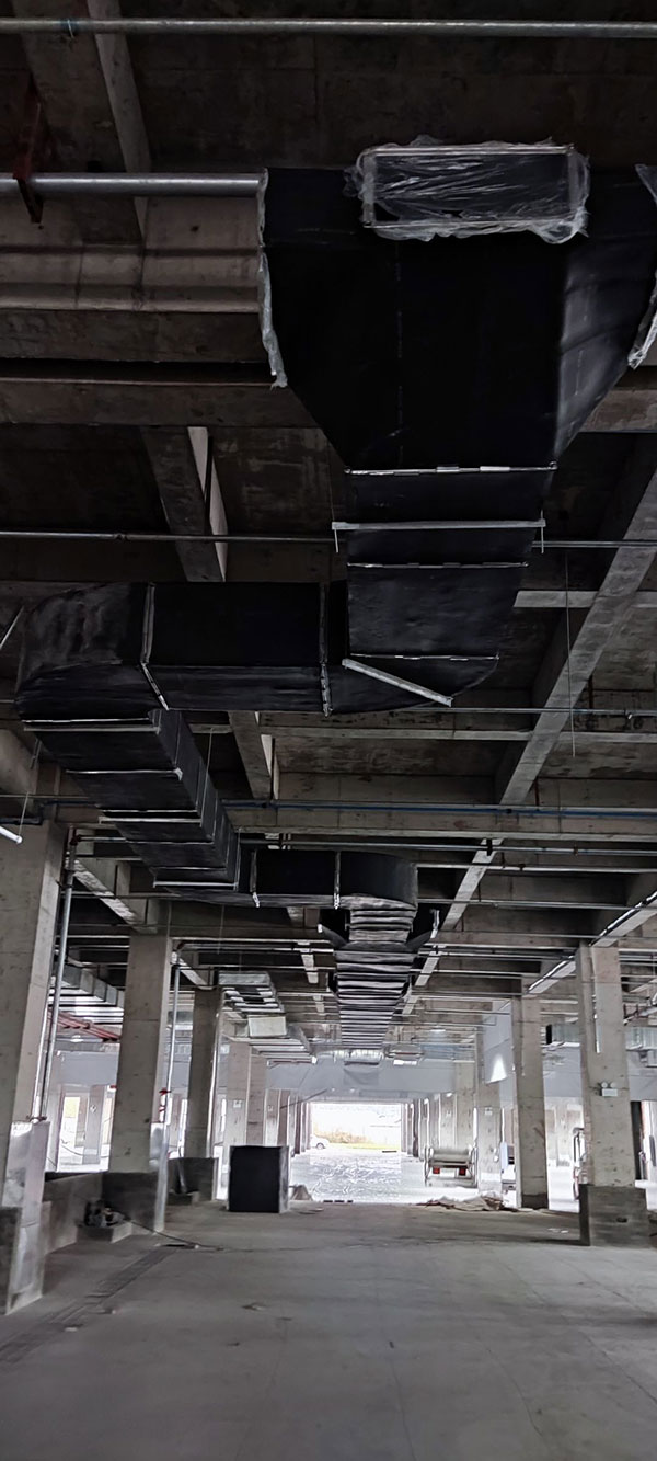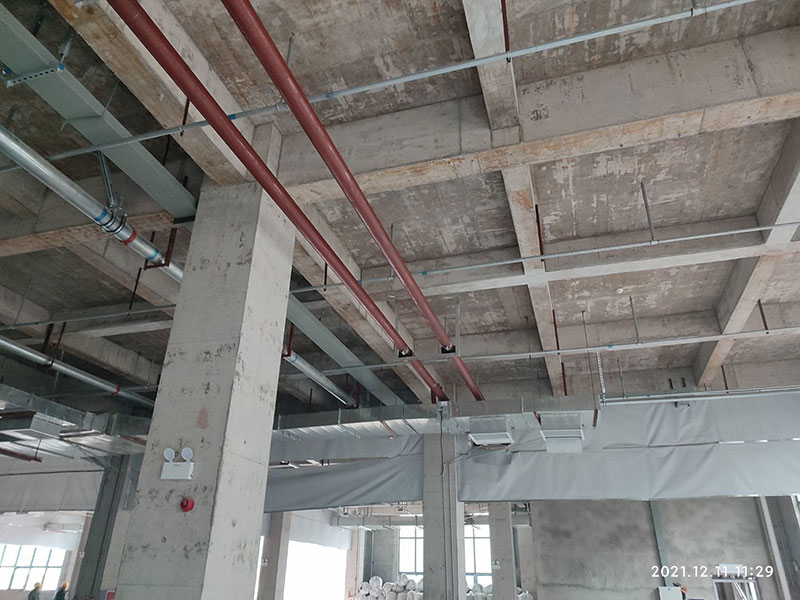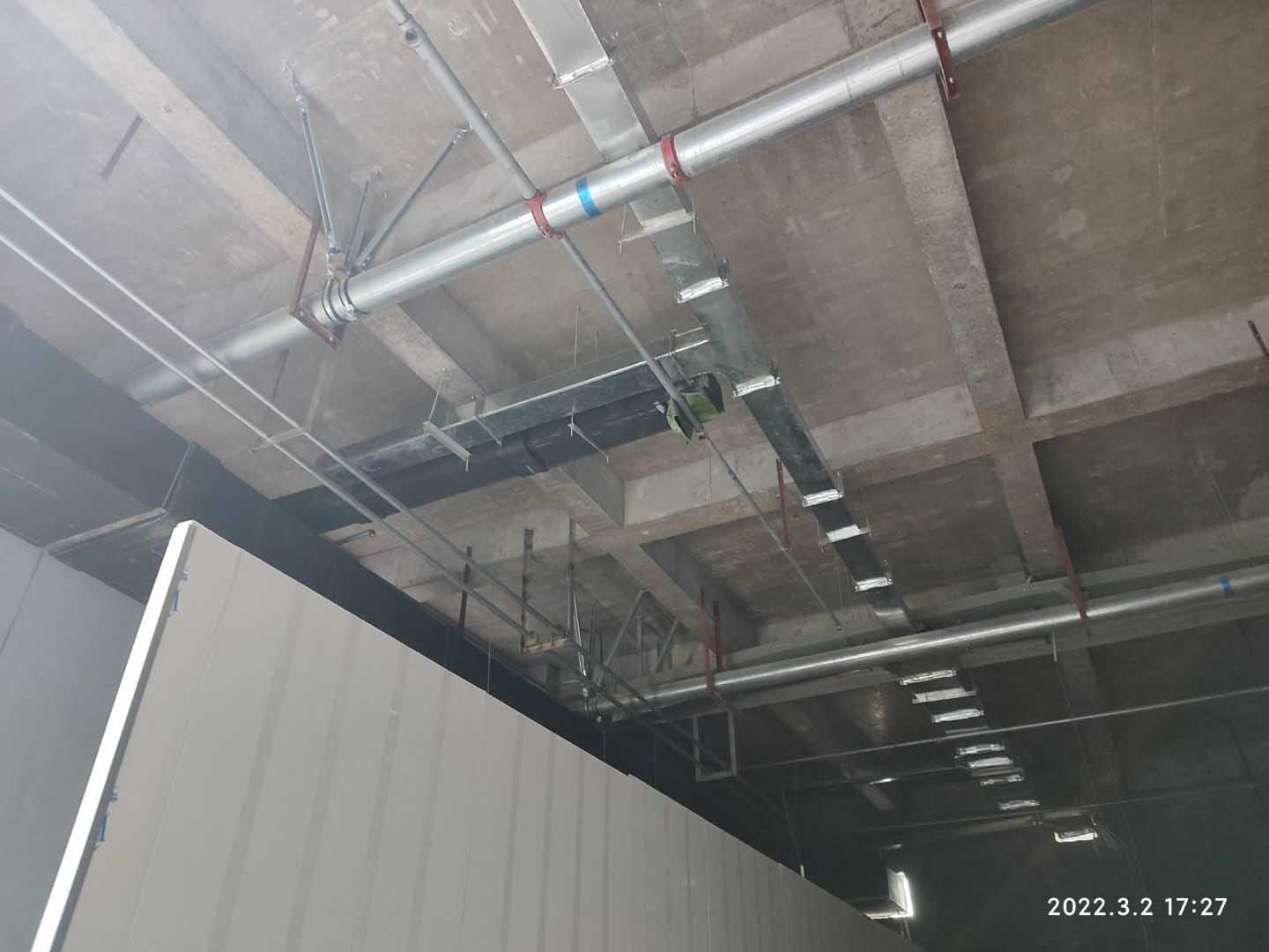 1,風管主管安裝及保溫完成80%; 2,鋼結構構件預制完成70%,安裝完成30%; 3,彩鋼板墻板完成3%,頂板吊筋安裝完成10%