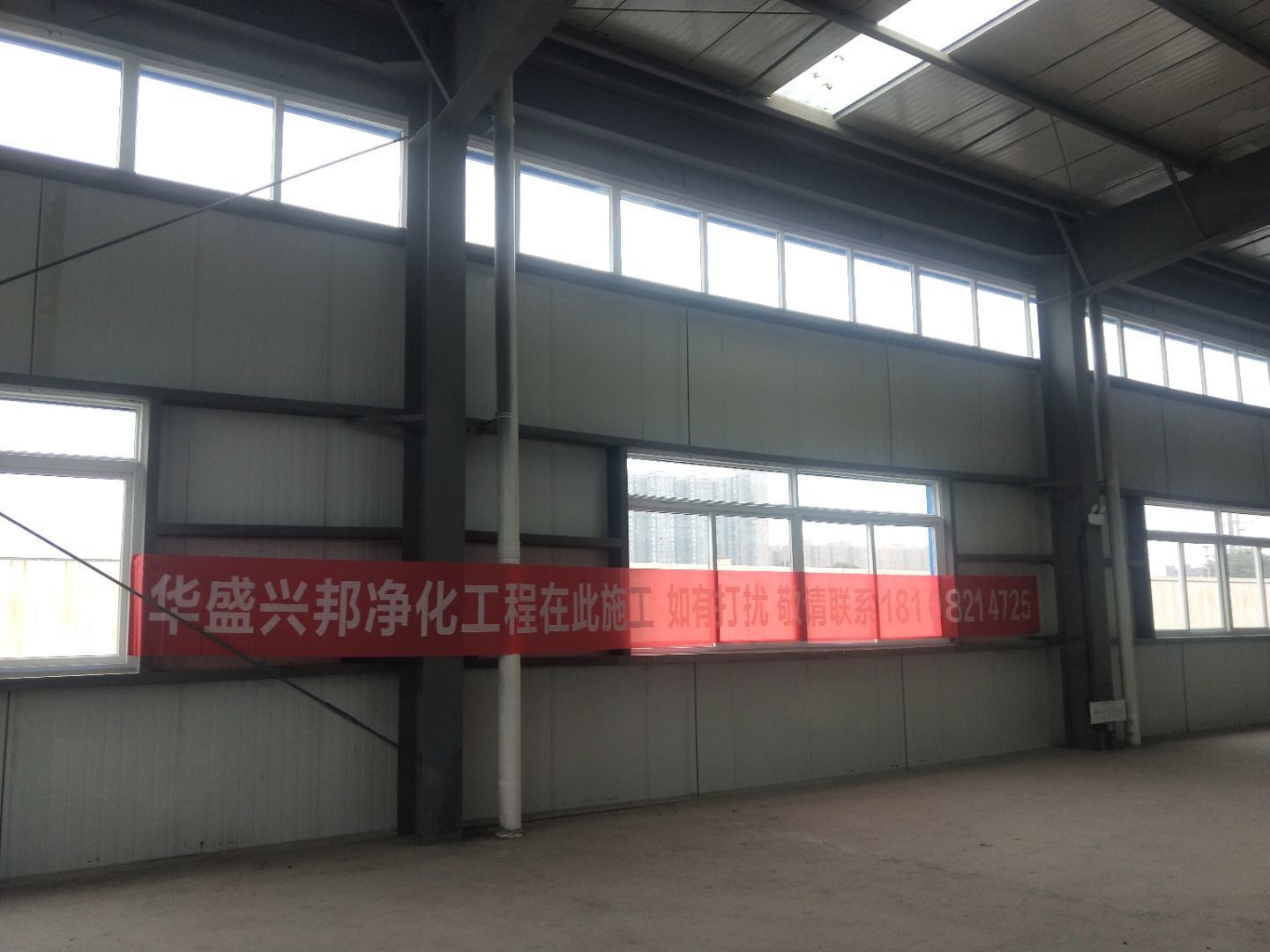 彩鋼密封工程完成85%,水電完成85%,自制門窗完成100%