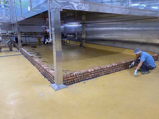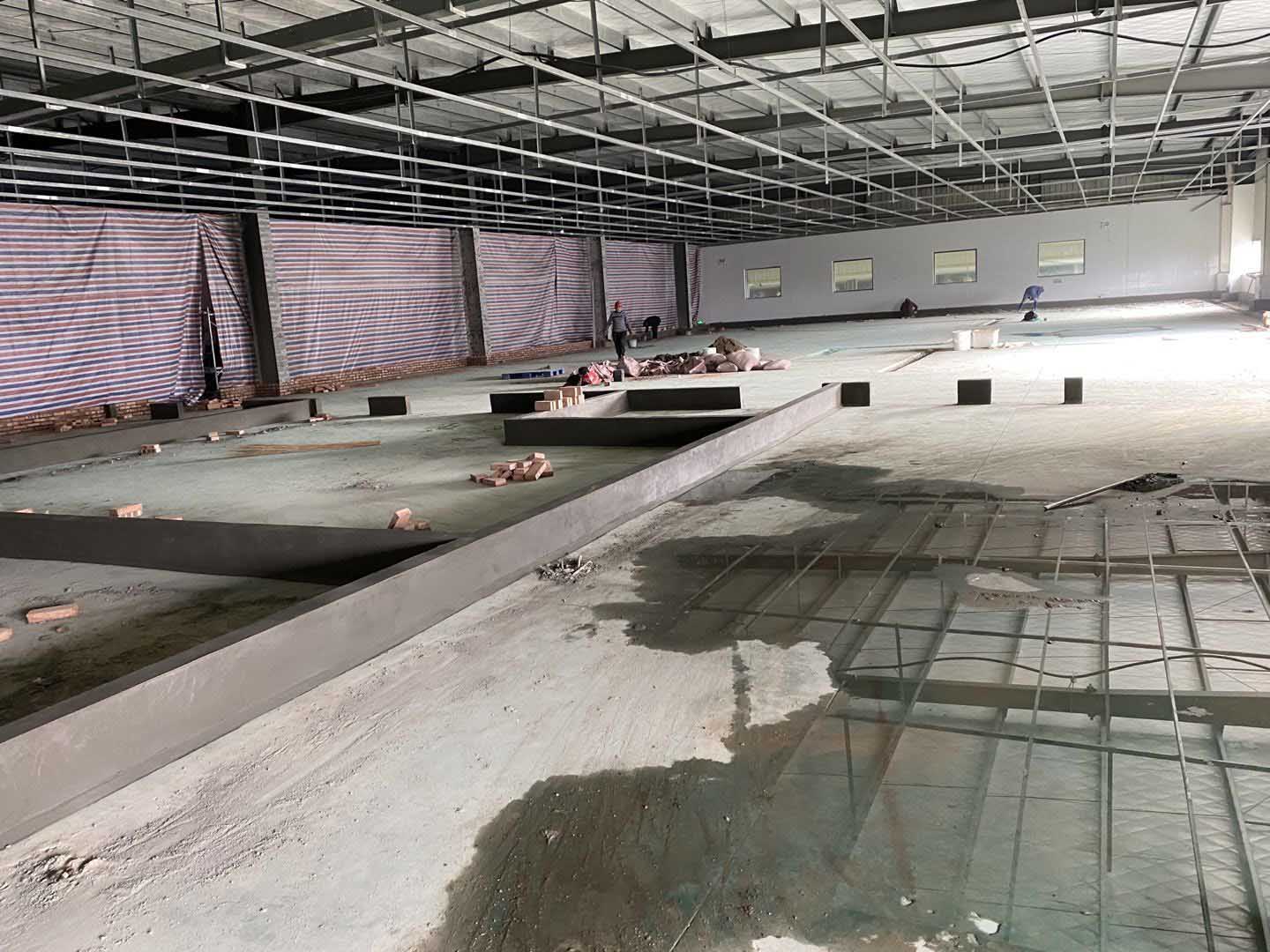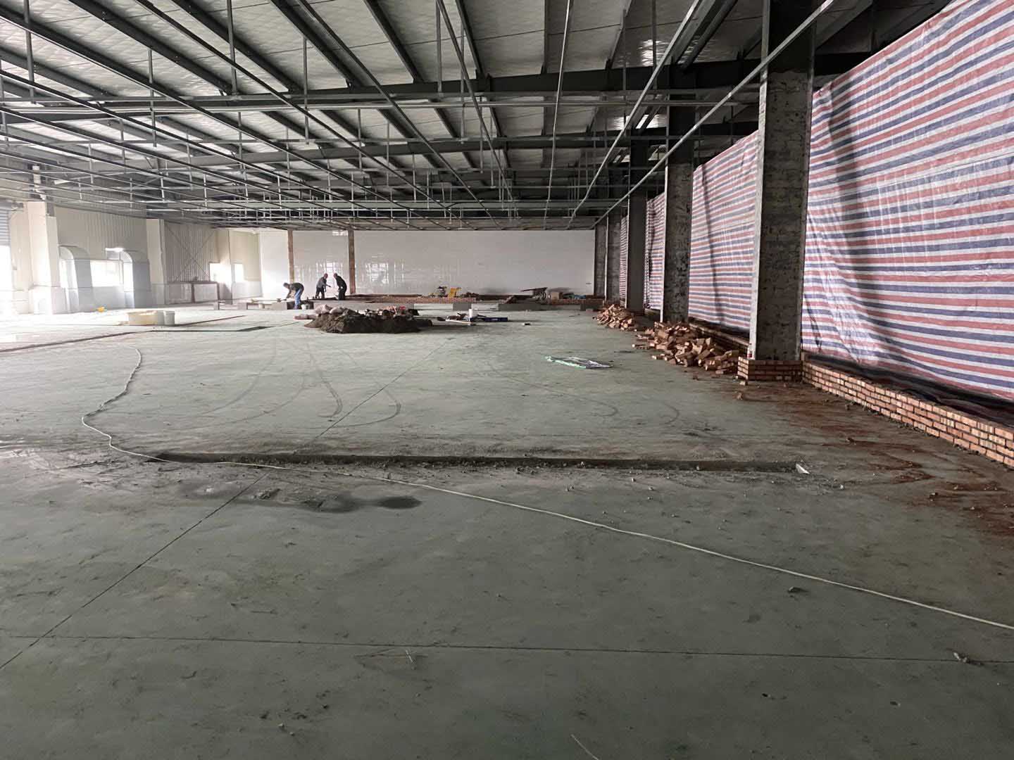 1、三車間環氧地坪超耐磨面層施工完成、二車間增加環氧地坪工程量打磨和底涂施工; 2、增項彩鋼隔墻板施工、門安裝; 3、風機電源接駁、排氣扇波紋管更換安裝; 4、土建擋水墻、門洞貼磚勾縫
