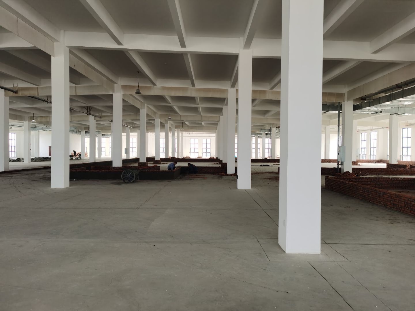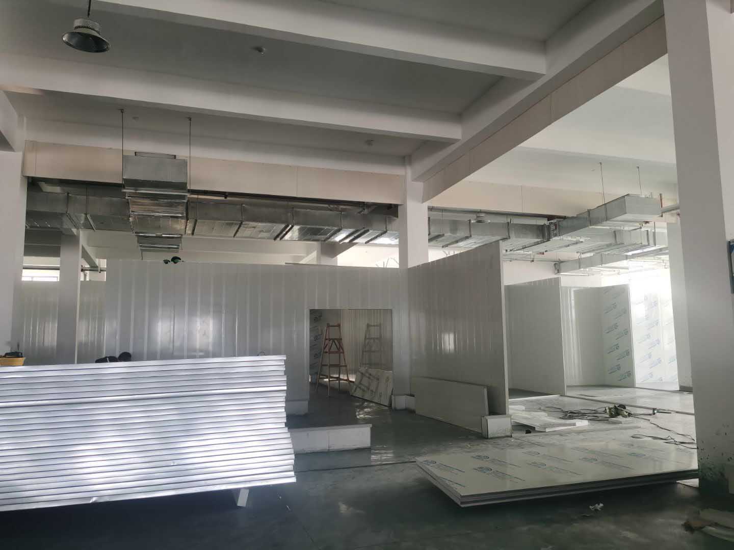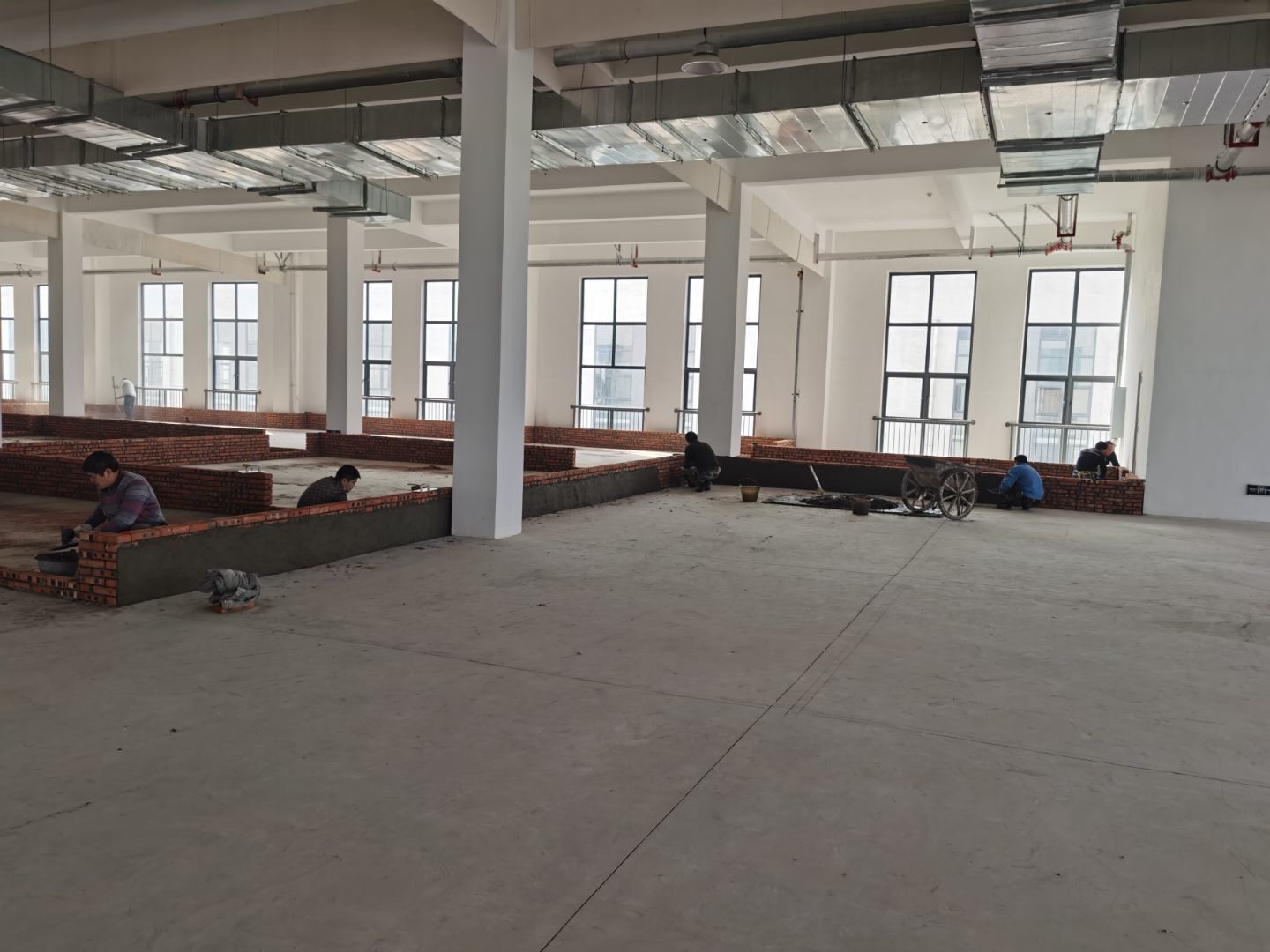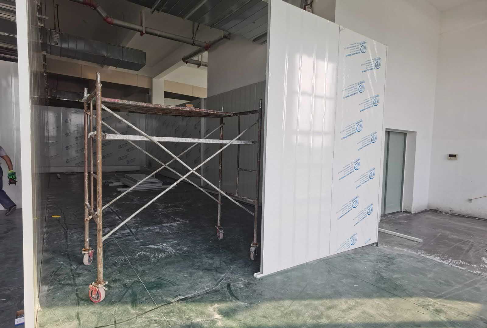 今日施工內容。 ①土建材料二次轉運上樓進度完成100% ②擋水墻施工進度完成100% ③防水施工第8天。進度完成100% ④排水溝砌磚第5天,完成進度100% ⑤室內排水溝貼磚第3天完成進度100% ⑥外墻排水施工第2天完成進度100% ⑦室內排水溝不繡鋼折邊件焊接完成100% ⑧防水閉水試驗已完成 ⑨發泡混凝土已完成100% ⑩凍庫鋼筋綁扎完成100%