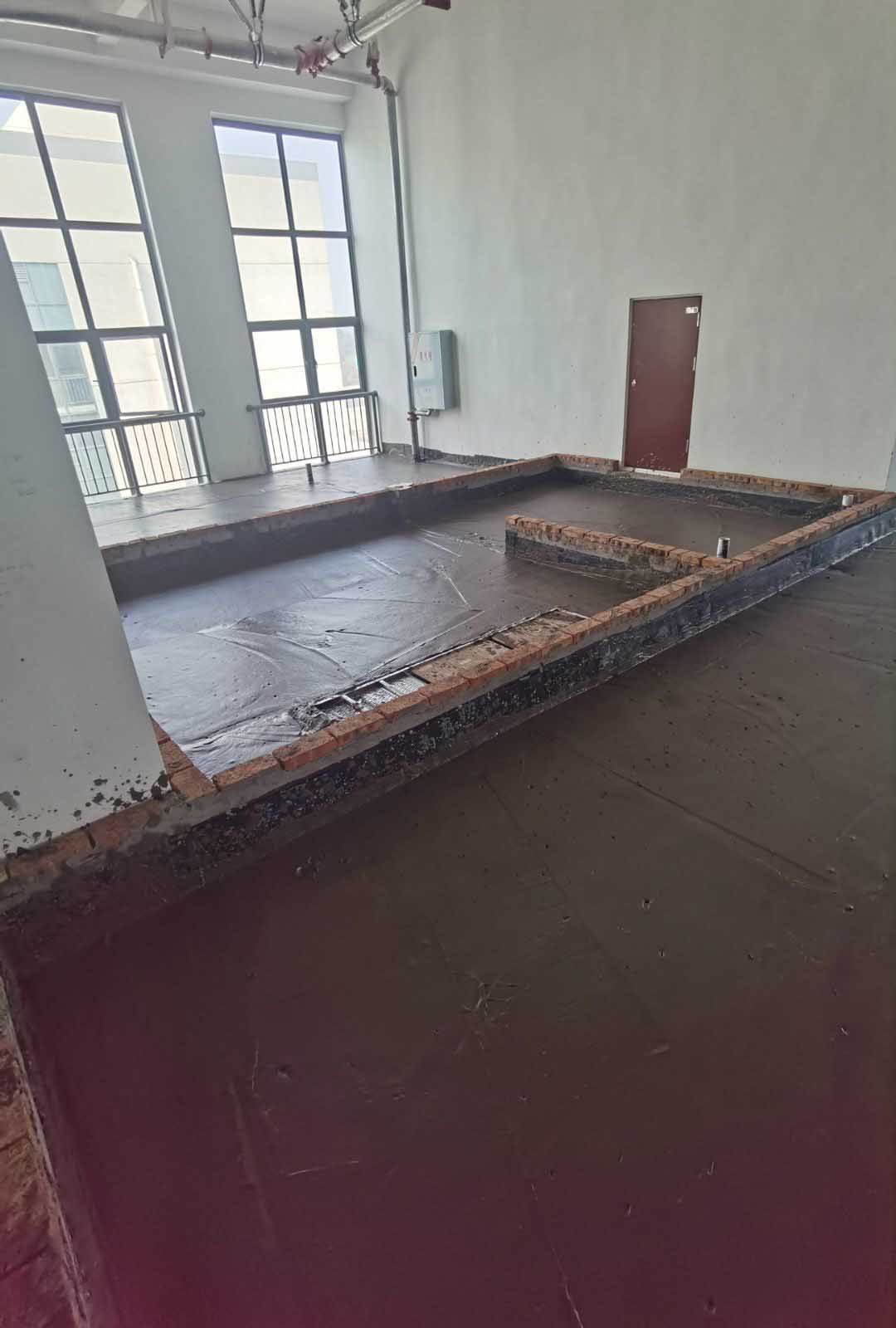 今日施工內容。 ①土建材料二次轉運上樓進度完成100% ②擋水墻施工進度完成100% ③防水施工第8天。進度完成100% ④排水溝砌磚第5天,完成進度100% ⑤室內排水溝貼磚第3天完成進度100% ⑥外墻排水施工第2天完成進度100% ⑦室內排水溝不繡鋼折邊件焊接完成100% ⑧防水閉水試驗進行中