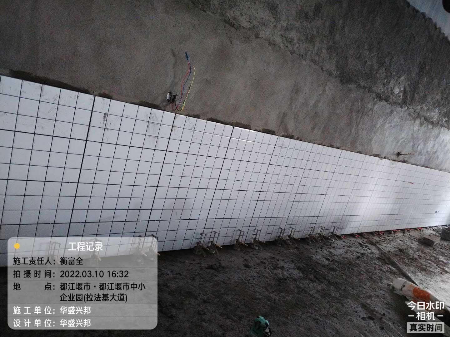 今日施工內容 1,電工收尾 2,漆工嵌縫 3,鋪貼墻地磚 4,衛生間避水實驗