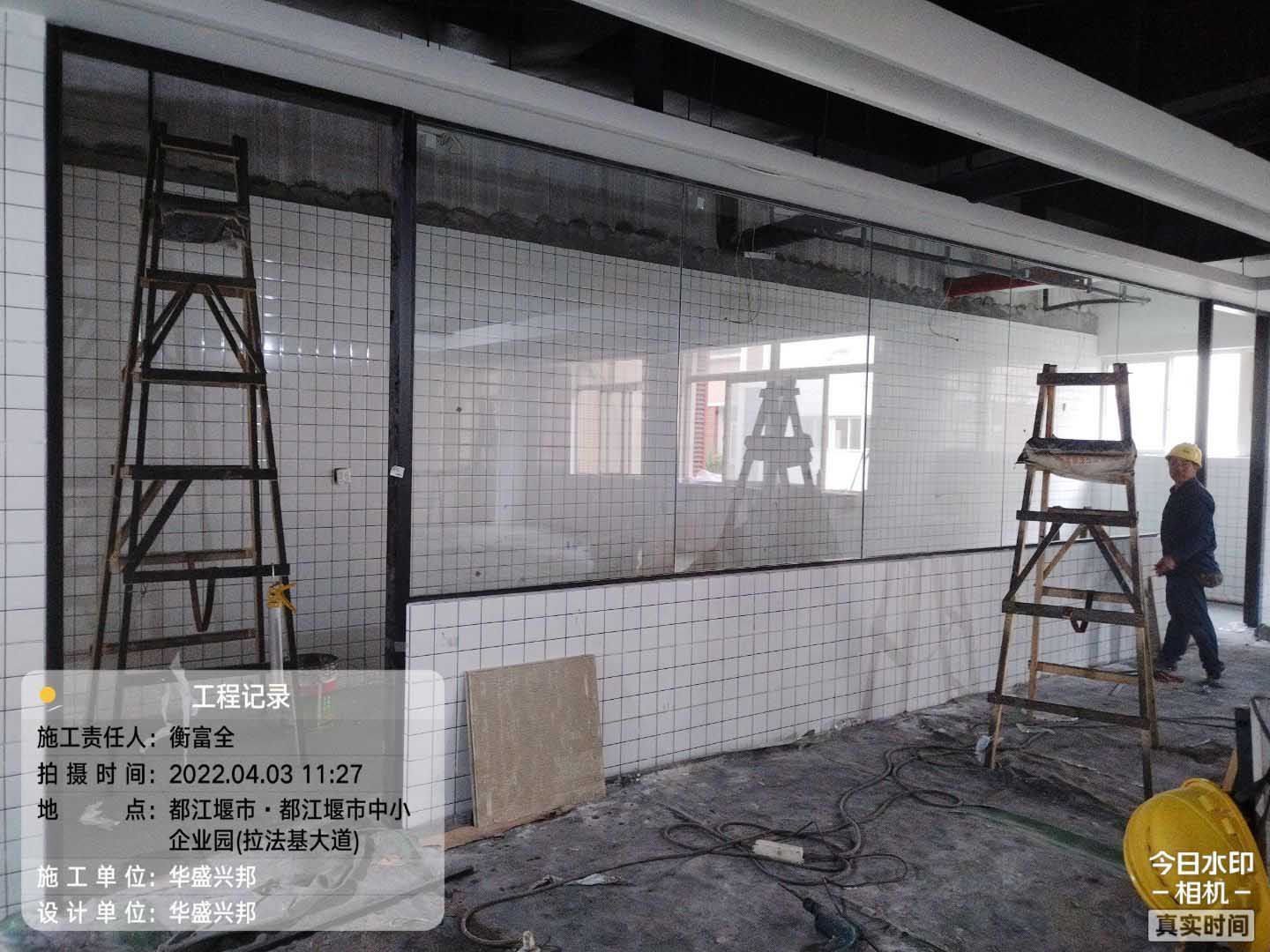 今日施工內容 1,燈具安裝 2,衛生清理 3,窗簾,軟膜測量 4,油炸車間改造 今日材料進場 無 四、明日施工計劃. 1,燈具安裝 2,衛生清理 3,油炸車間改造施工 4,不銹鋼安裝 遺留問題