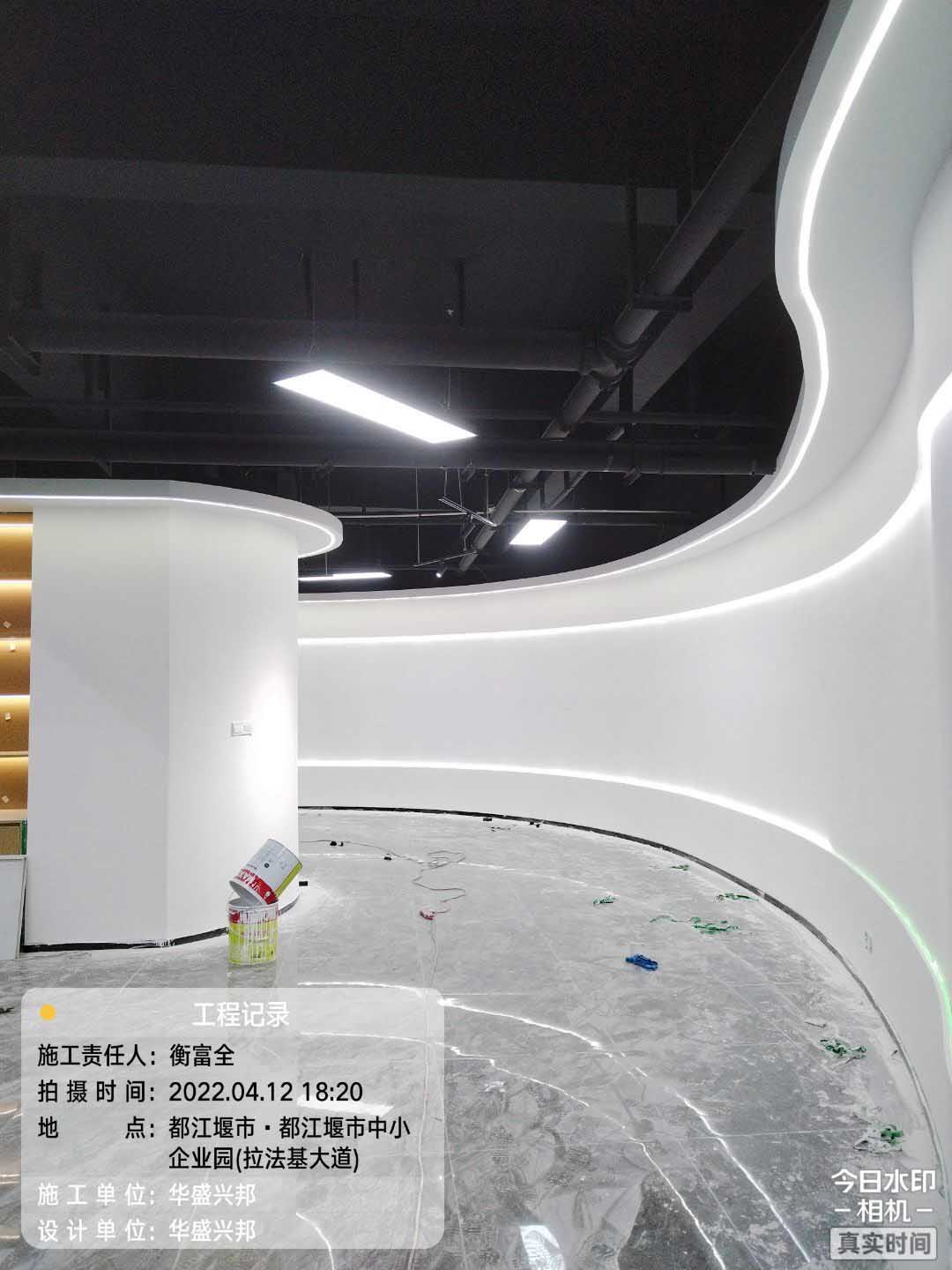 今日施工內容 1,地磚勾縫 2,樓板吊頂施工 3,漆工收尾 4,燈具安裝 5,木門,鈦合金門安裝