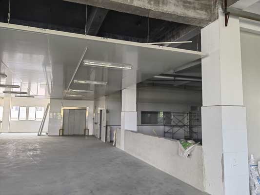 1,彩鋼墻板施工第20天,除預(yù)留區(qū)域外完成進(jìn)度100% 2,彩鋼頂板施工第30天,完成進(jìn)度99%。 3,水電照明安裝施工第44天,除動(dòng)力電外,完成進(jìn)度80% 4,擋水墻貼瓷磚施工第31天,完成進(jìn)度100% 5,彩鋼板收尾工作第34天,完成進(jìn)度70% 6,新增衛(wèi)生間隔斷項(xiàng)目,施工第2天,完進(jìn)度100% 7,新增包柱子施工第19天,完成進(jìn)度100% 8,原有紗窗已完成全部換新 9,原有土建墻體已完成全部乳膠漆