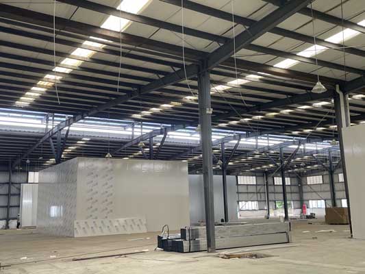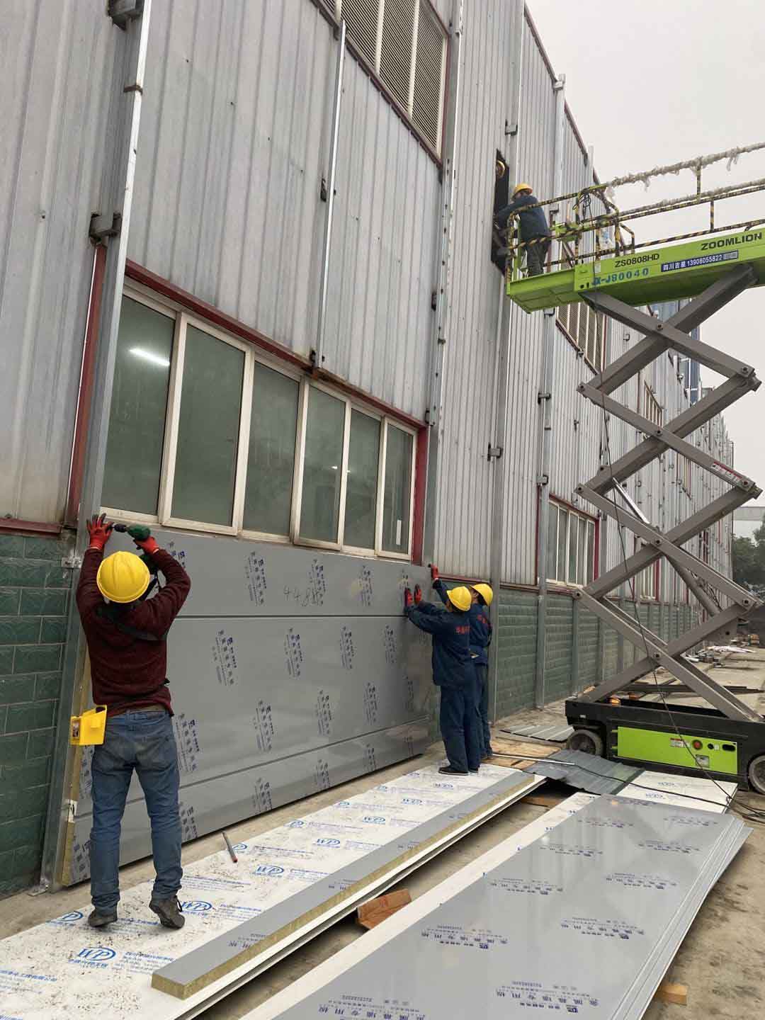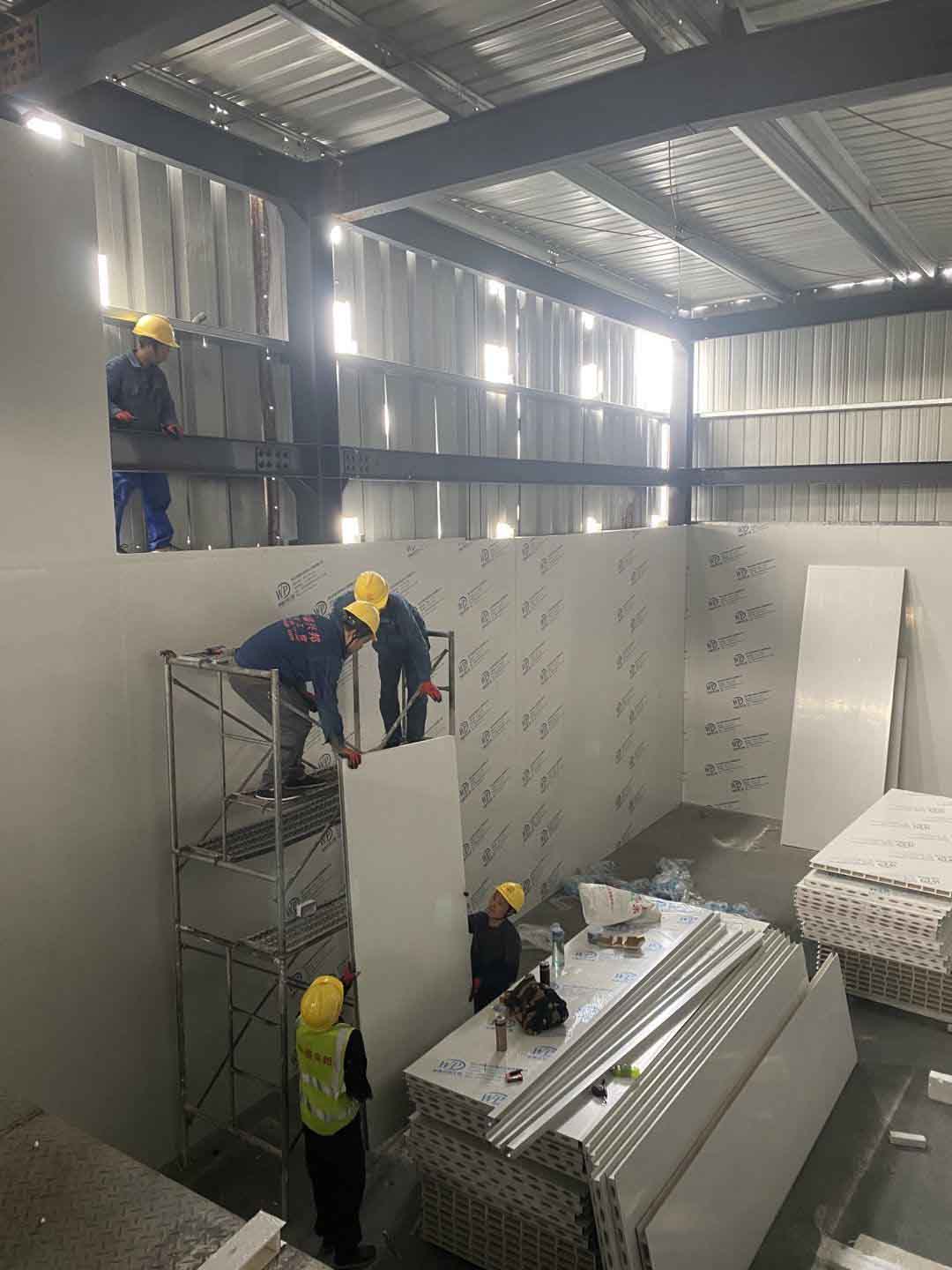 外墻板材到場,外墻施工,凈化車間隔斷施工