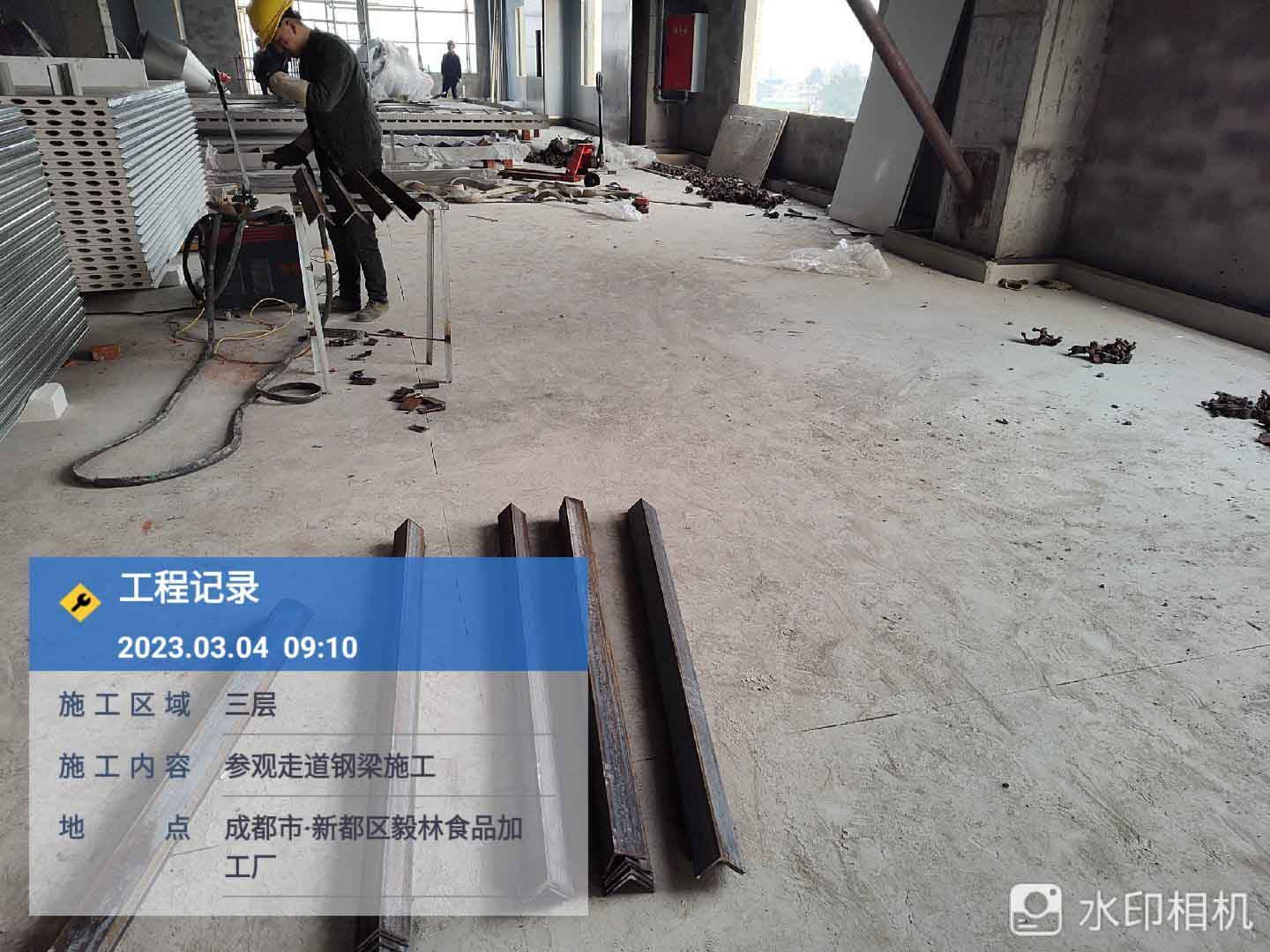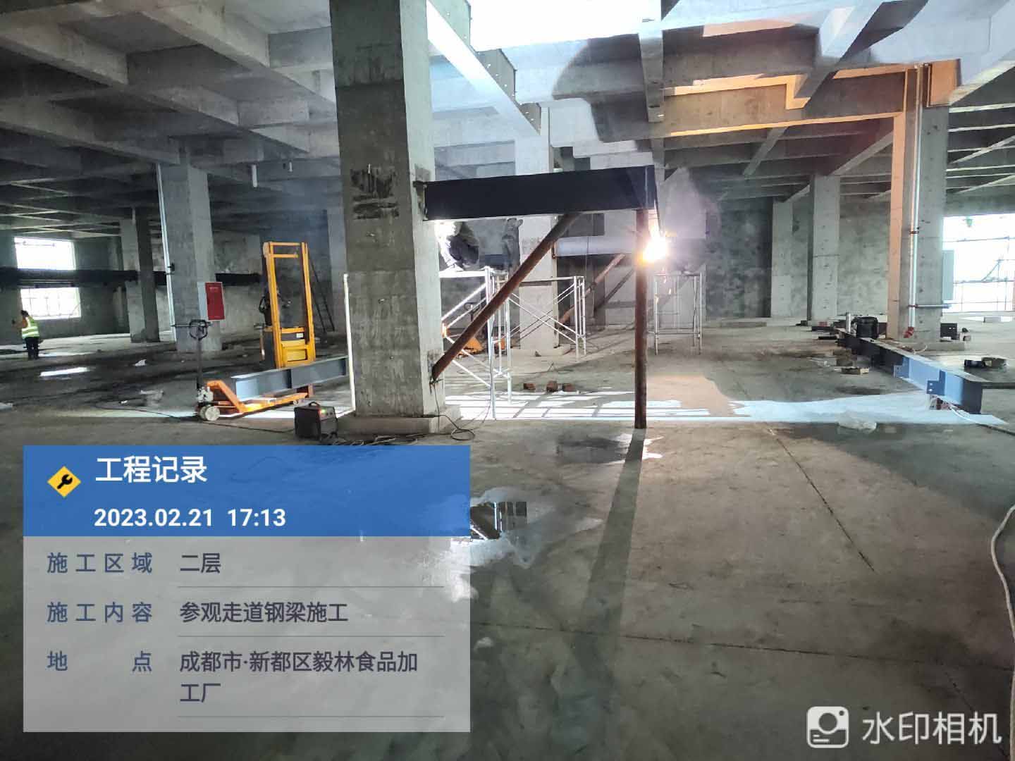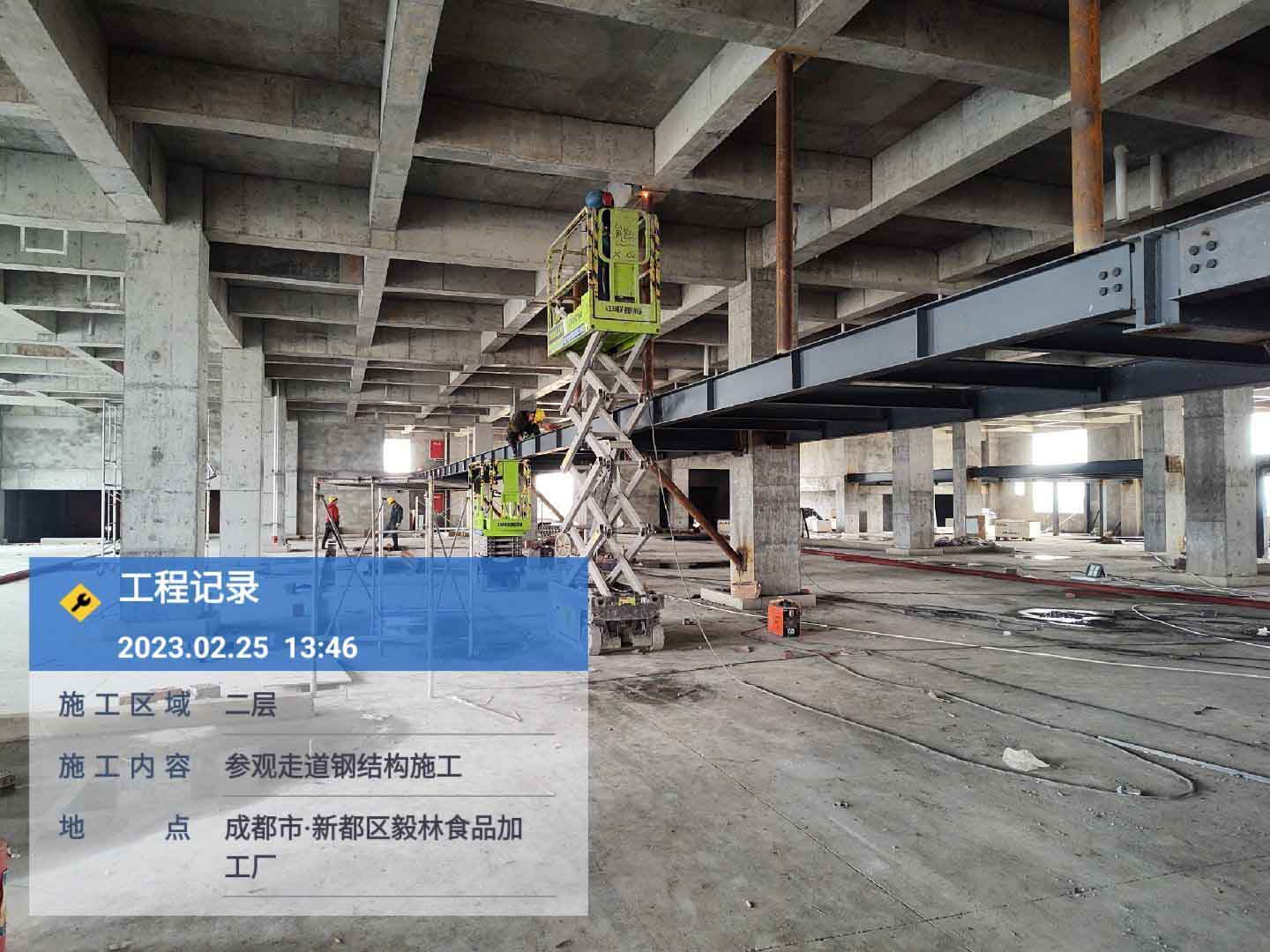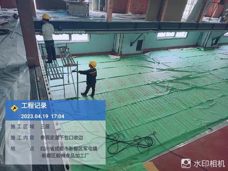 1、四層防水閉水中 2、三層燈具、電源線安裝完成40% 3、三層已安裝吊頂區(qū)域打膠收邊完成80% 4、三層冷水給水管安裝10% 5、二層彩板頂板30% 6、二層不銹鋼排水立管焊接30% 7、二三層參觀走道矩管框架焊接100%