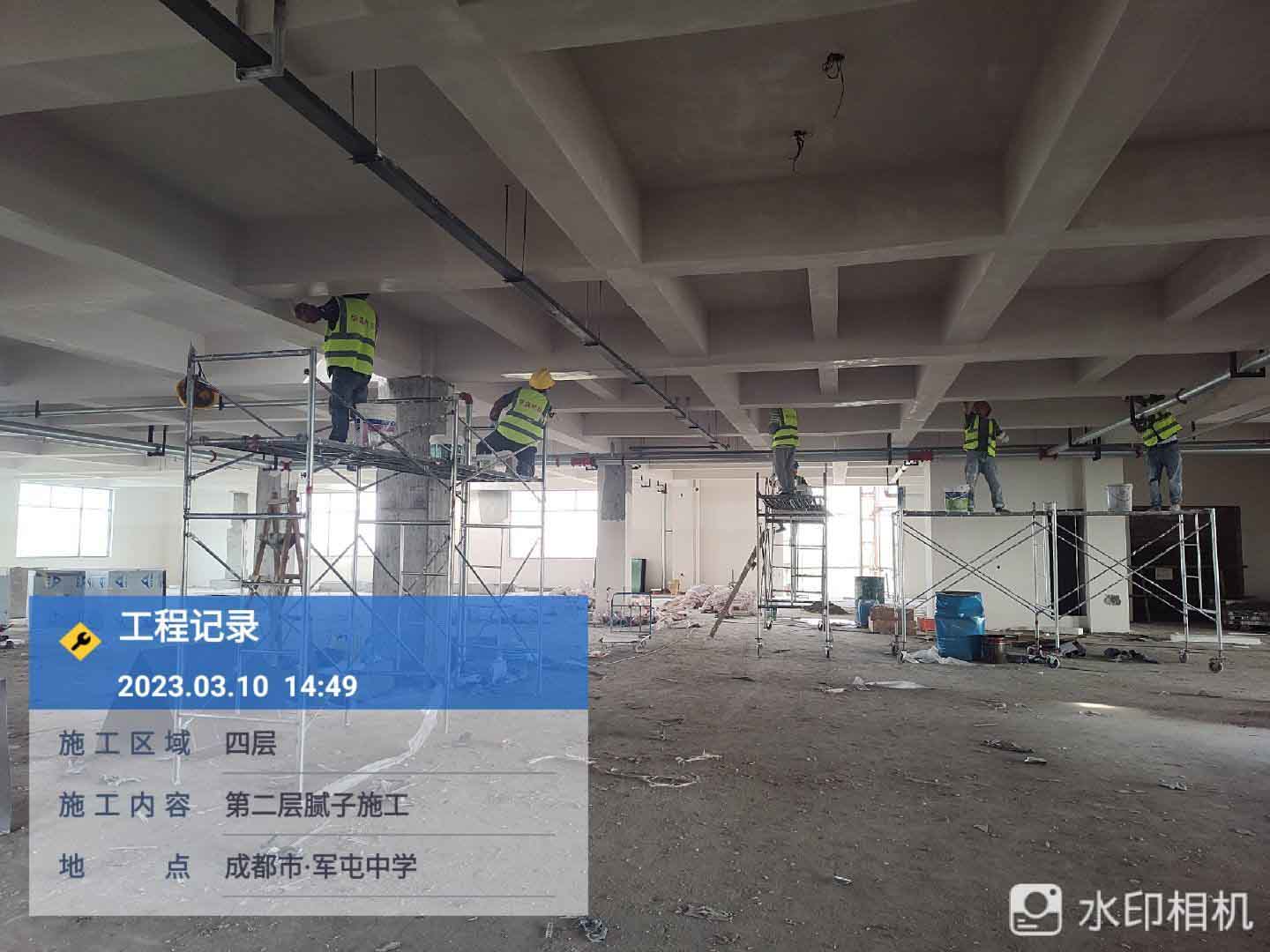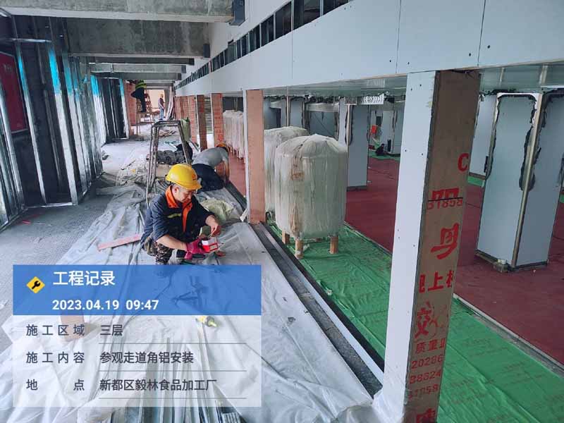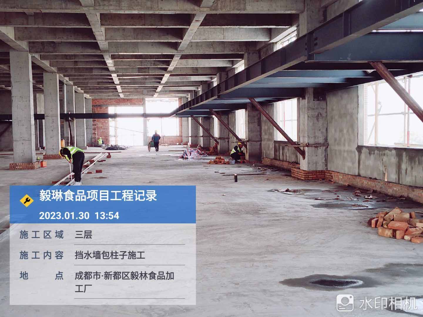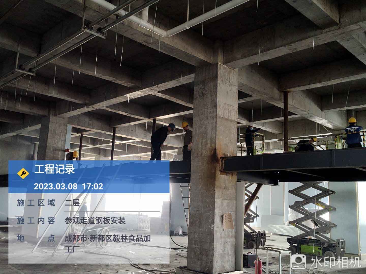 1、四層防水閉水中 2、三層燈具、電源線安裝完成40% 3、三層已安裝吊頂區(qū)域打膠收邊完成80% 4、三層冷水給水管安裝10% 5、二層彩板頂板30% 6、二層不銹鋼排水立管焊接30% 7、二三層參觀走道矩管框架焊接100%