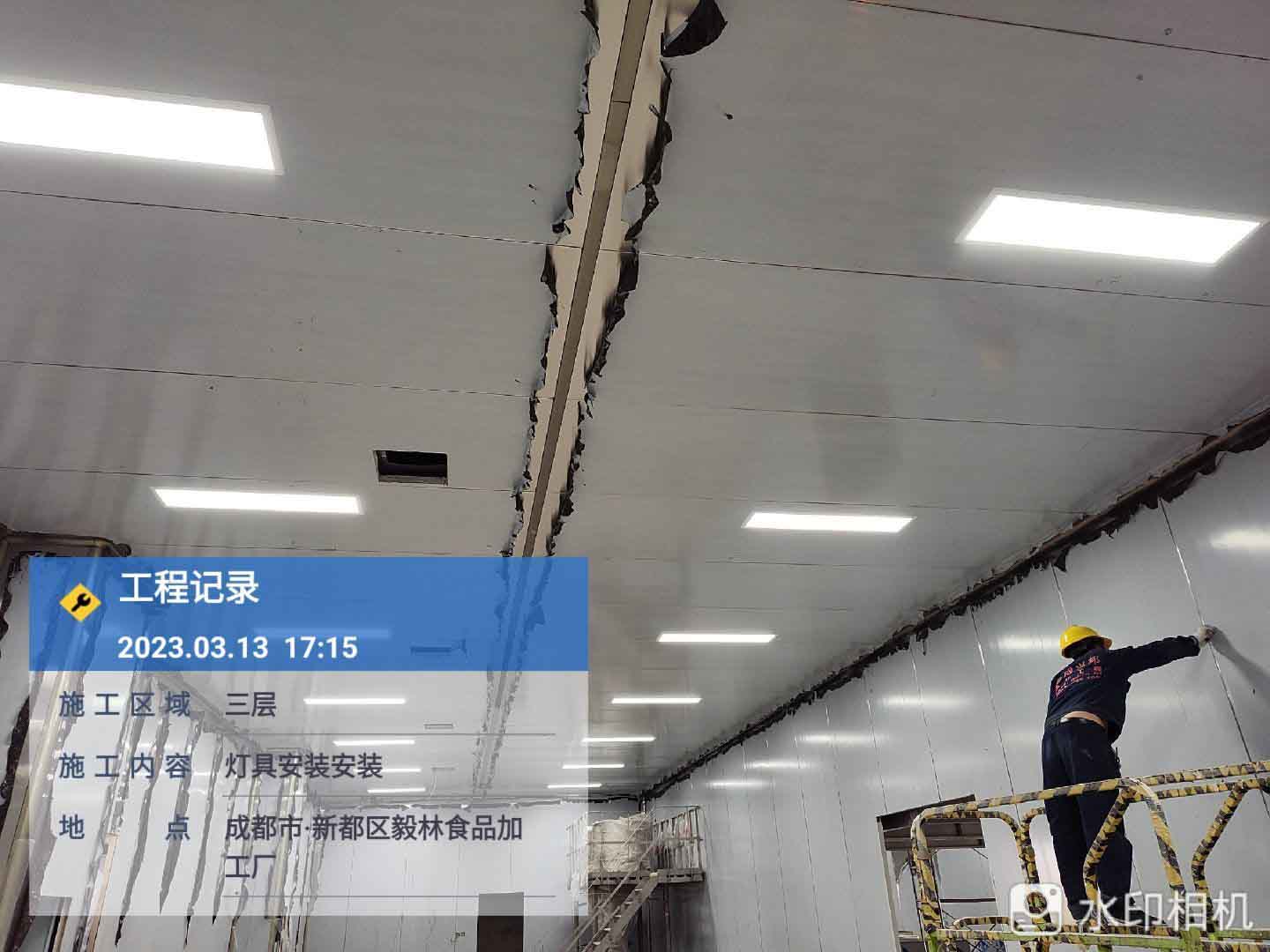 1、二層不銹鋼排水管完成50% 2、四層凍庫(kù)防水完成100%,蓄水中 3、四層第一片膩?zhàn)邮┕ね?0%,第二遍膩?zhàn)油瓿?0% 4、墻板安裝完成90% 5、三層石膏完成60%,第一片膩?zhàn)油瓿?0% 6、三層潔凈墻板安裝完成85%、吊頂安裝完成35% 7、加工區(qū)門選色、水溝蓋送樣板確認(rèn)完成 8、二三層參觀走道鋼板開孔、收尾