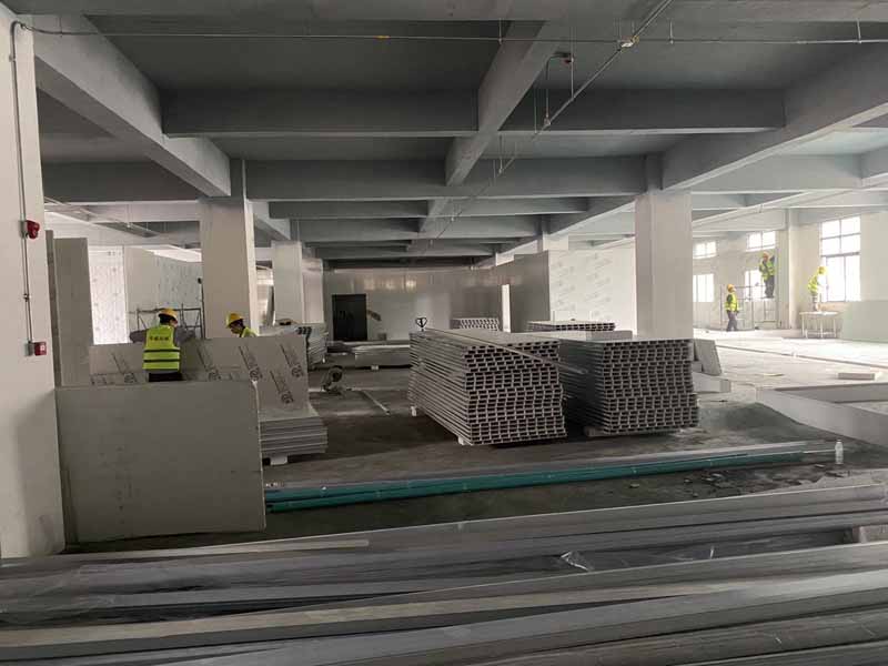吊頂施工完成,地坪施工,設(shè)備進場安裝