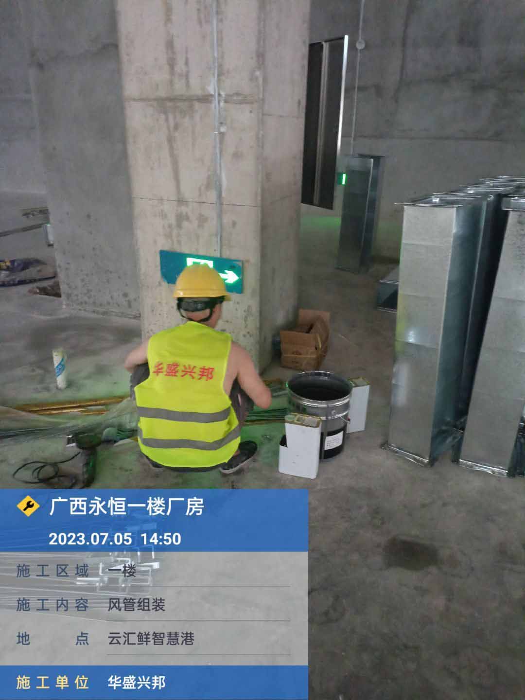 日施工內容 一樓: 1:公區固化施工 三樓: 1: 暖通水管安裝 2: 風管保溫 安裝 3:彩鋼立板 吊頂安裝 4:照明燈具安裝 5:彩鋼密封工程施