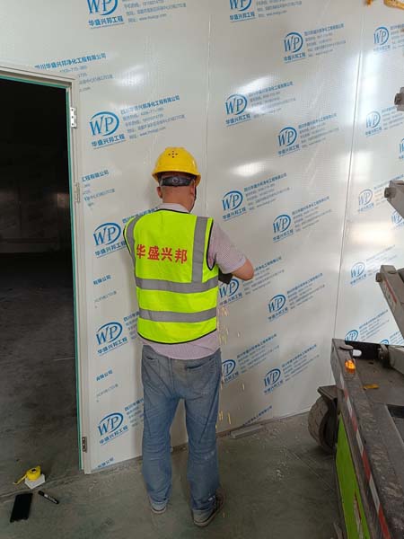 1.車間凈化板安裝完成。圓弧收邊,打膠基本完成。2、衛生打掃
